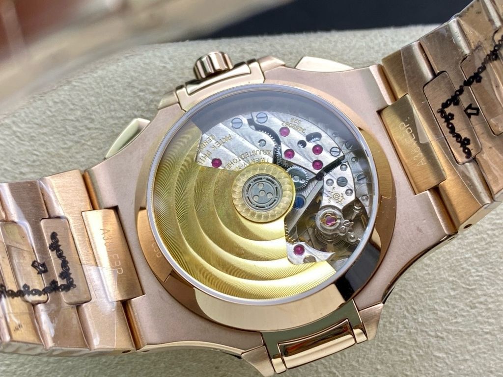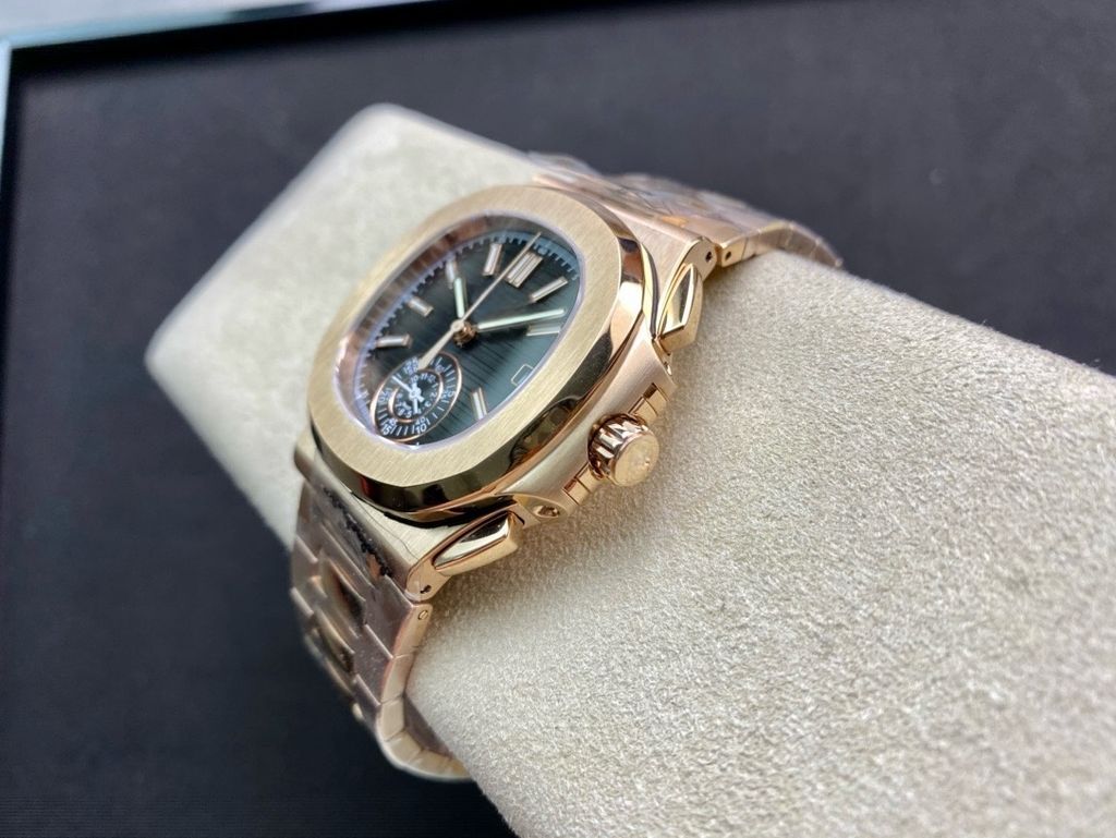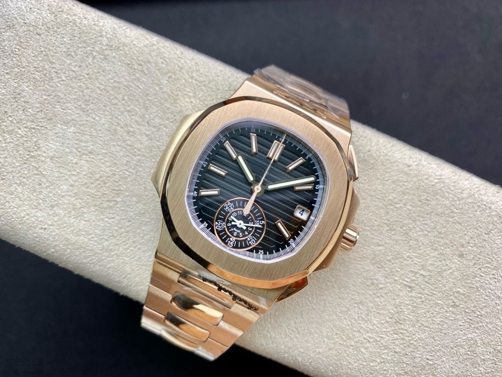 3KF 40MM Sports Luxury Replica Patek Philippe Sports Elegant 5980 Chronograph Watch Black Embossed Dial 18K Rose Gold Stainless Steel Strap
