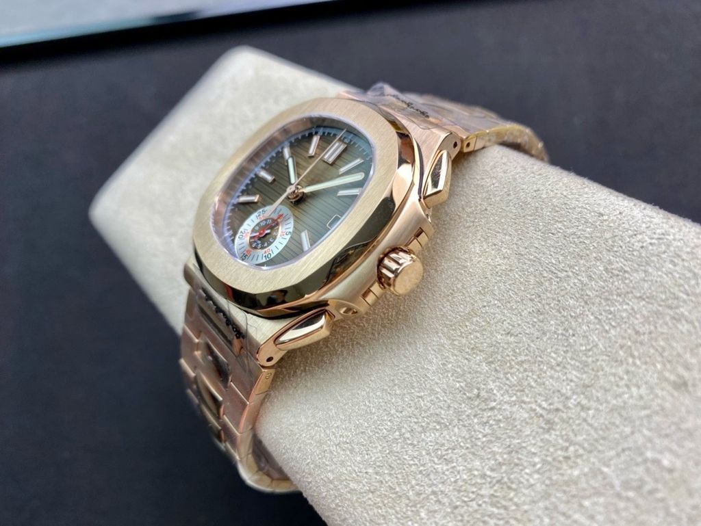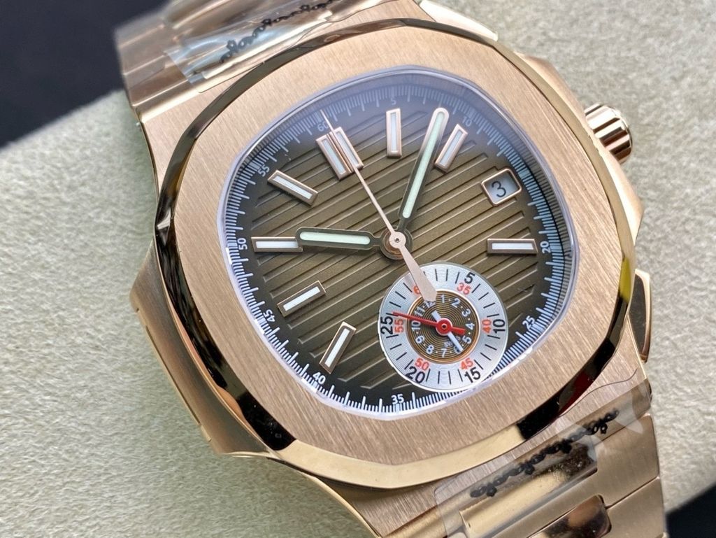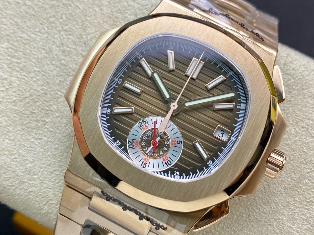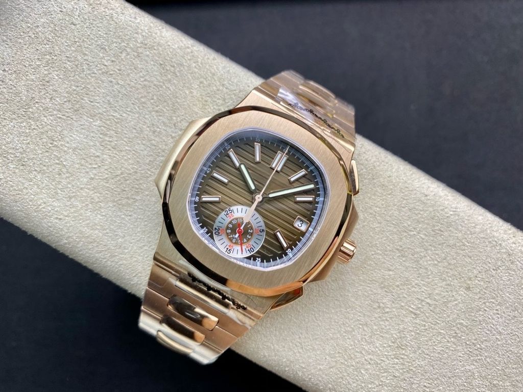 3KF 40MM Sports Luxury Replica Patek Philippe Sports Elegant 5980 Chronograph Watch Coffee Embossed Dial 18K Rose Gold Stainless Steel Strap