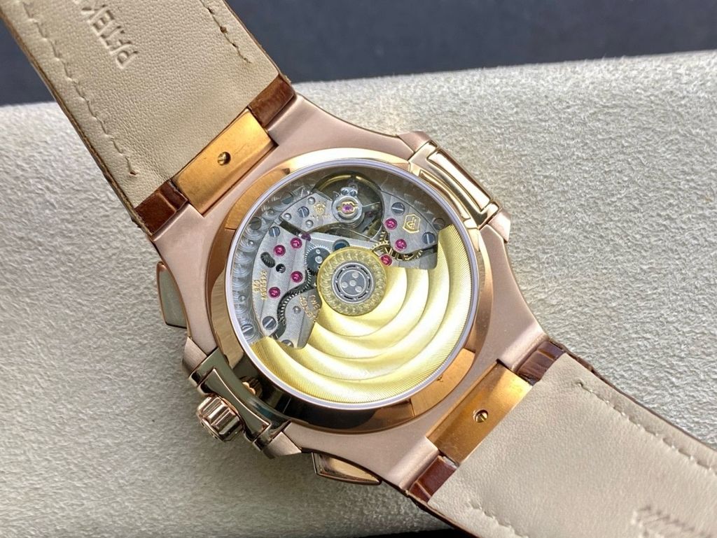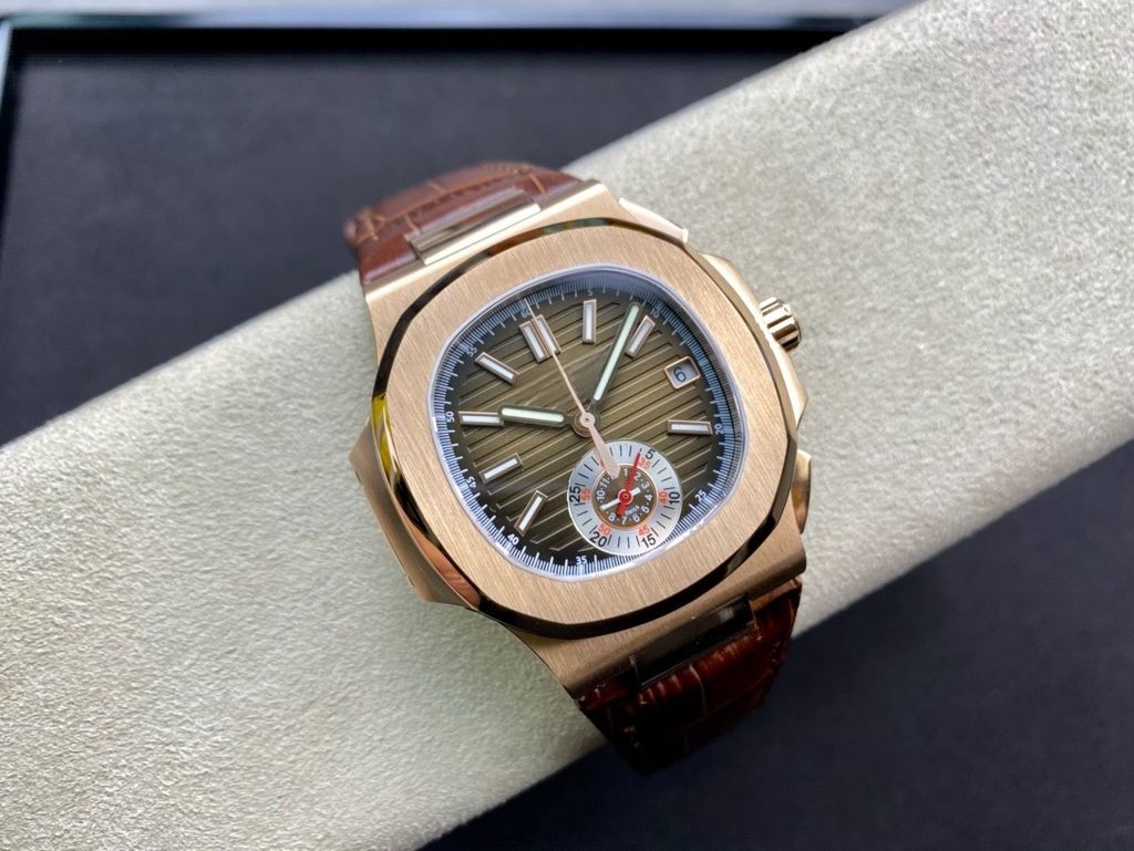 40MM 3KF Sports Luxury Replica Patek Philippe Sport Elegant 5980 Chronograph Watch Coffee Embossed Dial 18K Rose Gold Leather Strap