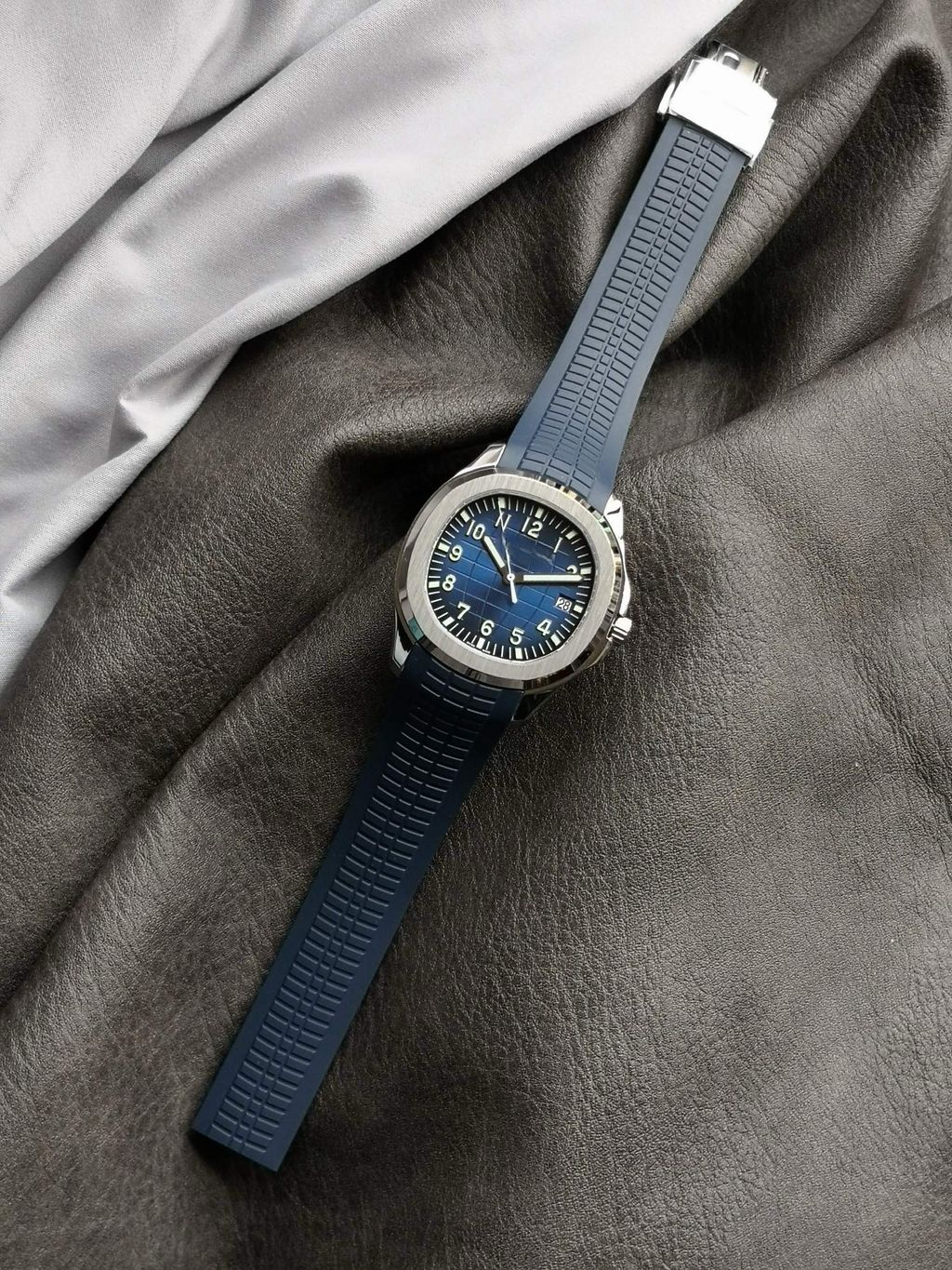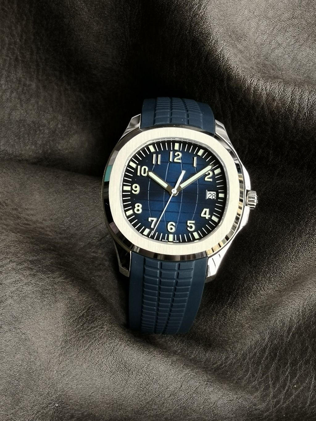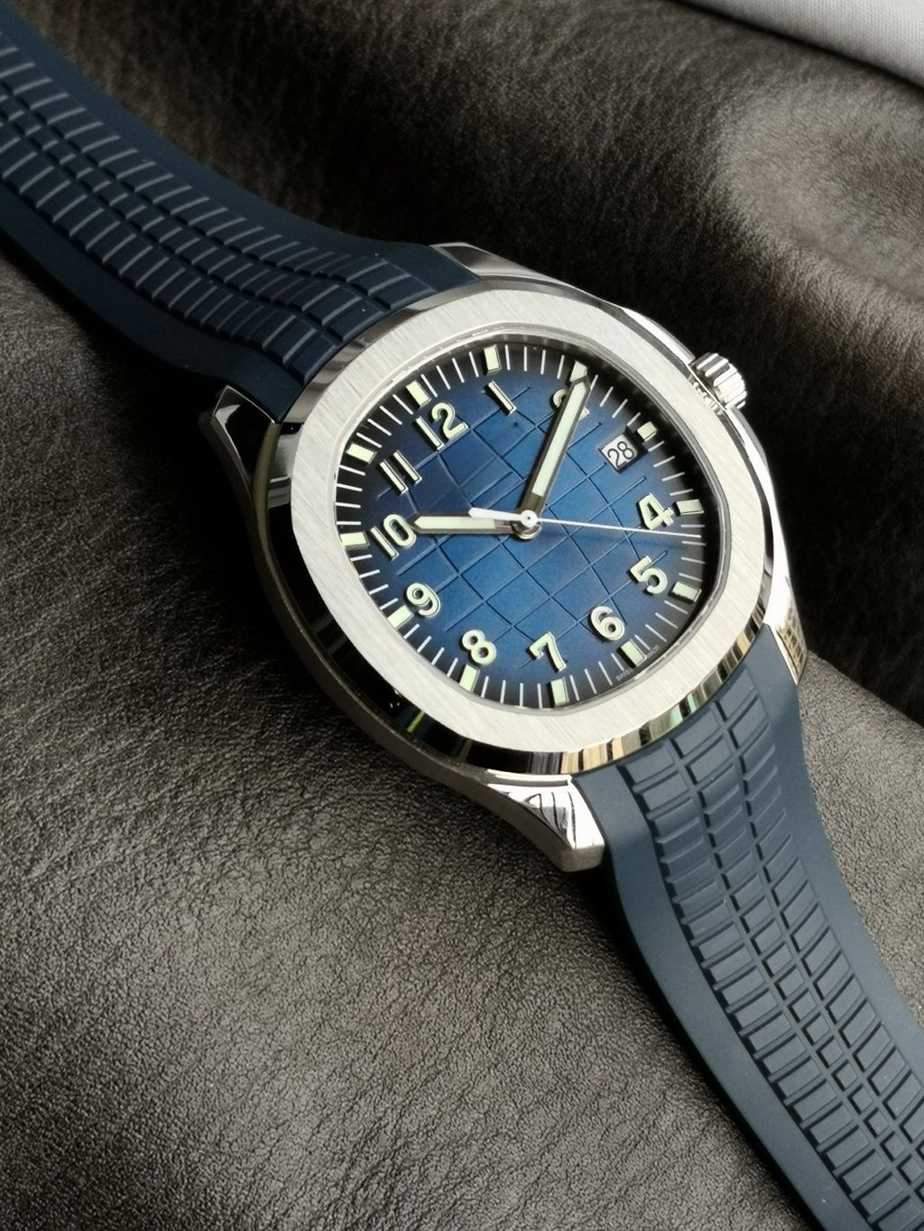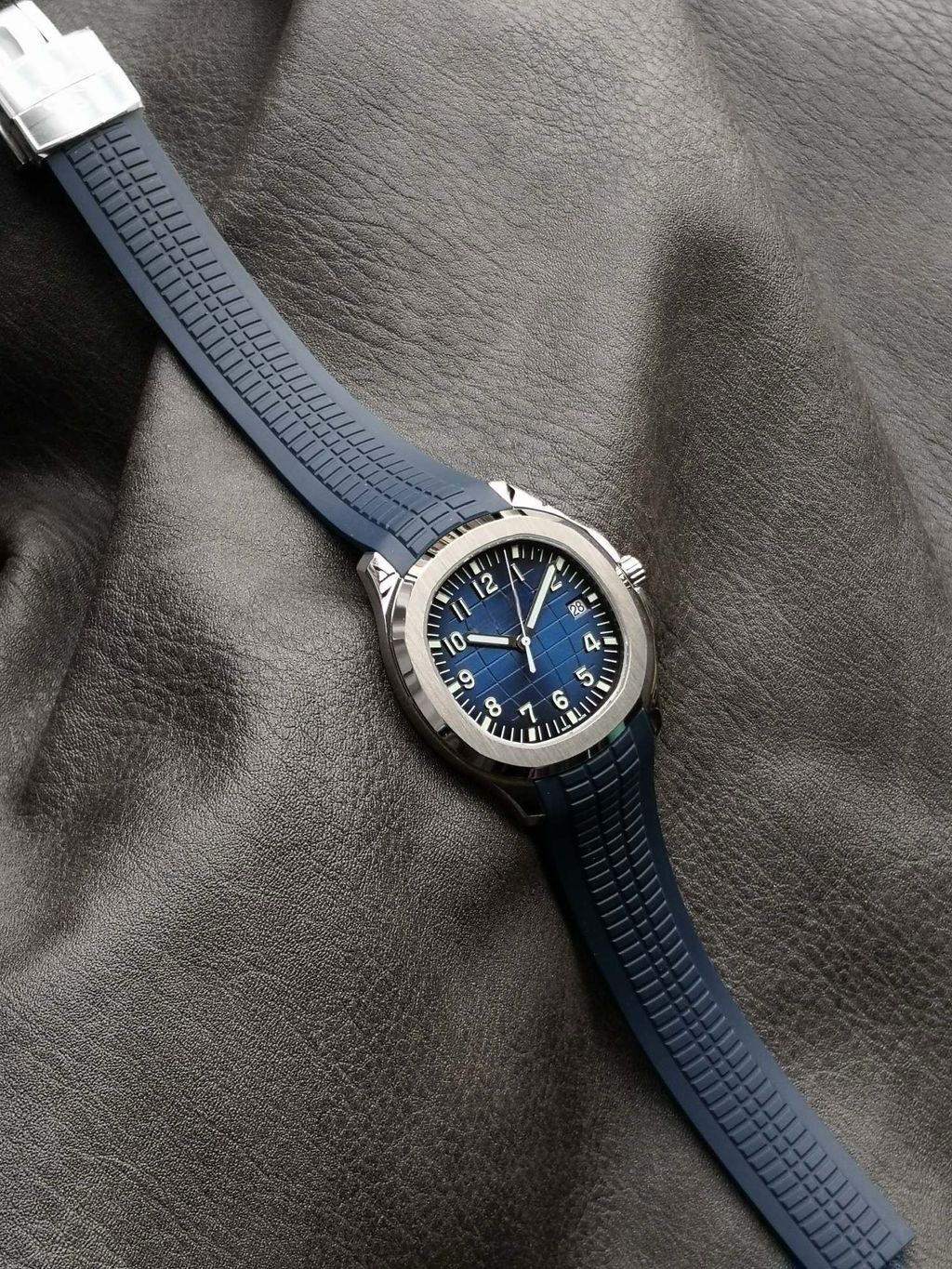 Top Sport Luxury Watch Replica Patek Philippe AQUANAUT Series 5168G BLUE Embossed Dial Ultra-thin Watch 8.3mm Rubber Strap
