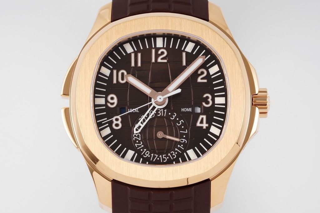 ZF Business Top Luxury Replica Patek Philippe 5164 AQUANUAT Series Dual Time 40.8MM Embossed Dial Rubber Strap