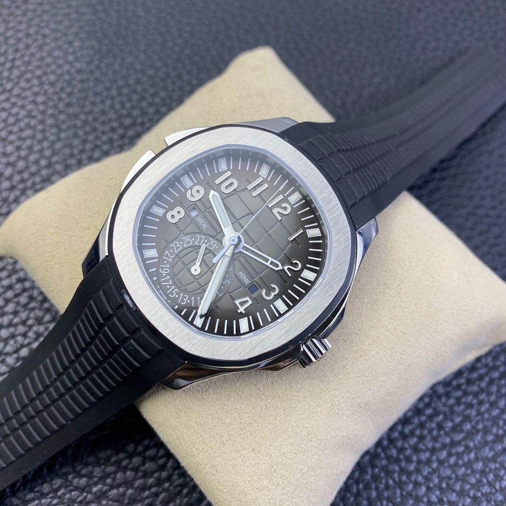 ZF Business Top Luxury Replica Patek Philippe 5164 AQUANUAT Series Dual Time 40.8MM Black Embossed Dial Rubber Strap