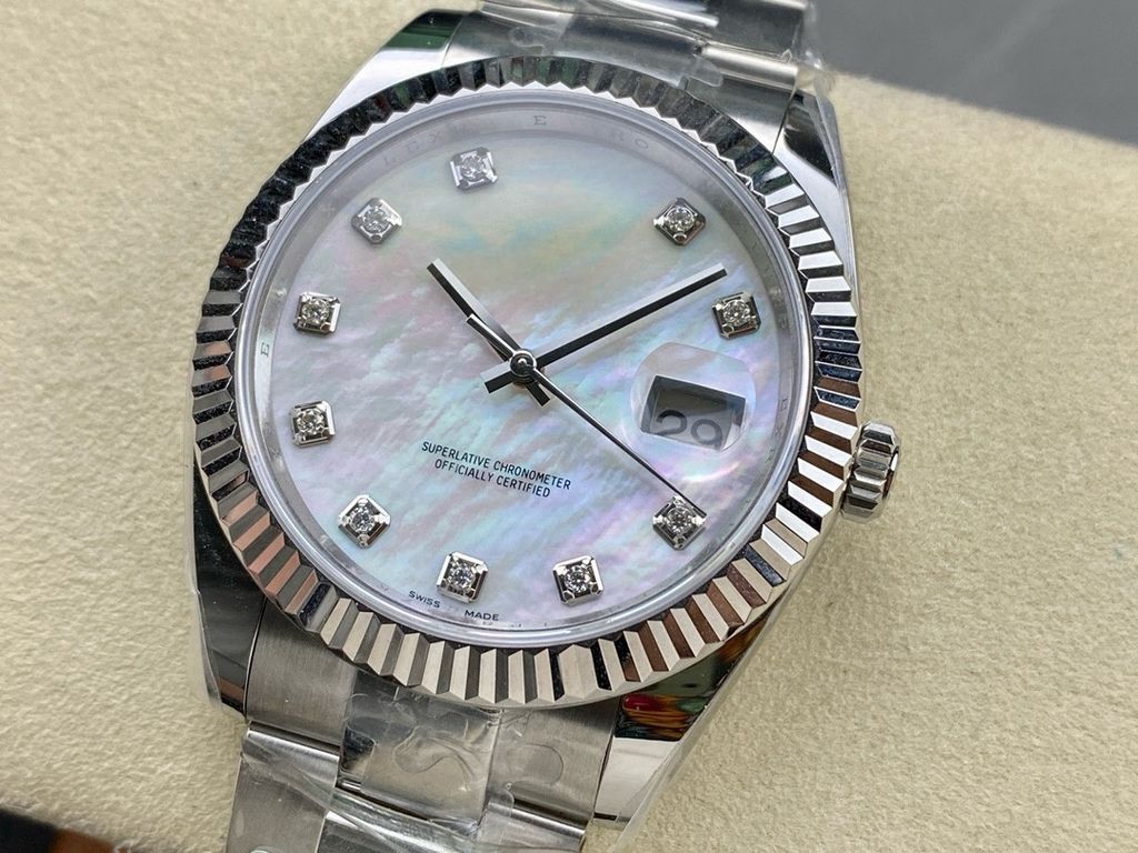 Replica Rolex Datejust M126334-0019 18K white gold 41mm AR FACTORY 3235 movement sapphire glass 904L Oystersteel three-row link Mother-of-pearl dial