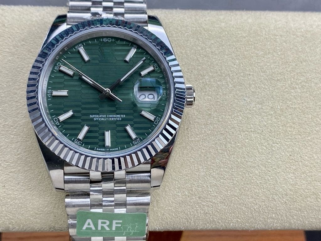 ARF Replica Rolex Datejust M126334-0030 Millennium strap AR FACTORY 3235 movement sapphire glass 904L Water ripple GREEN plate