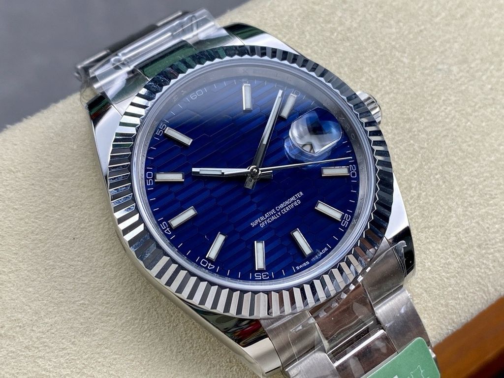 Replica Rolex Datejust M126334-0031 18K white gold 41mm AR FACTORY 3235 movement sapphire glass 904L Oystersteel three-row link Water ripple BLUE plate
