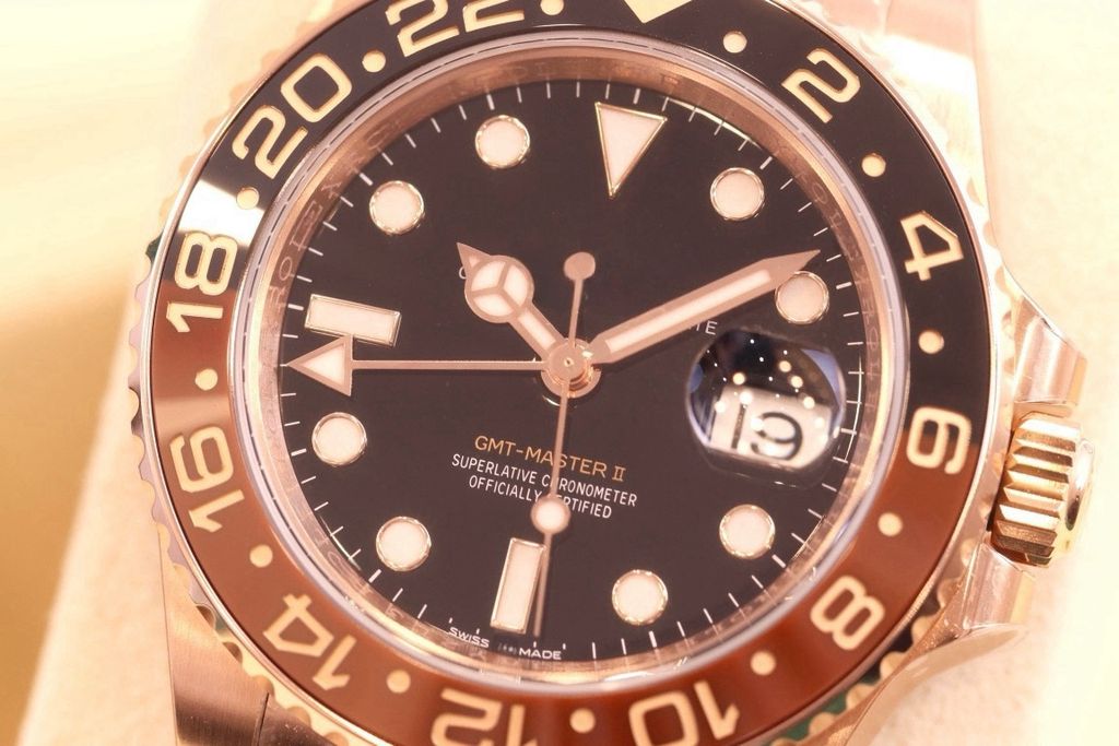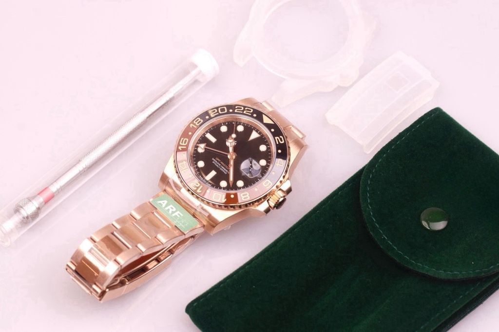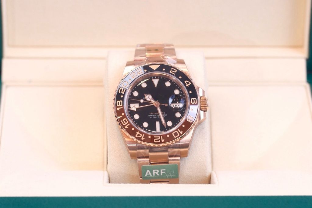 ARF REPLICA ROLEX GMT MASTER II 3285 Cerachrom ceramic M126715chnr-0001 40MM 904L Oystersteel three-grid solid steel band, 18k rose gold