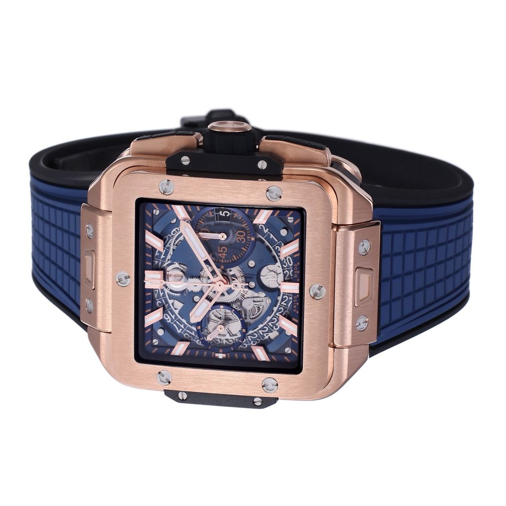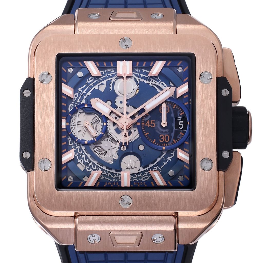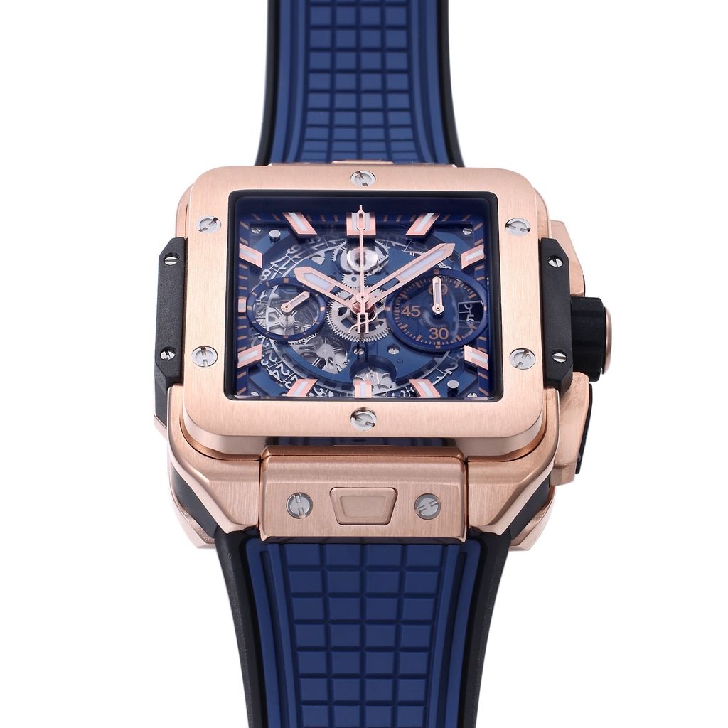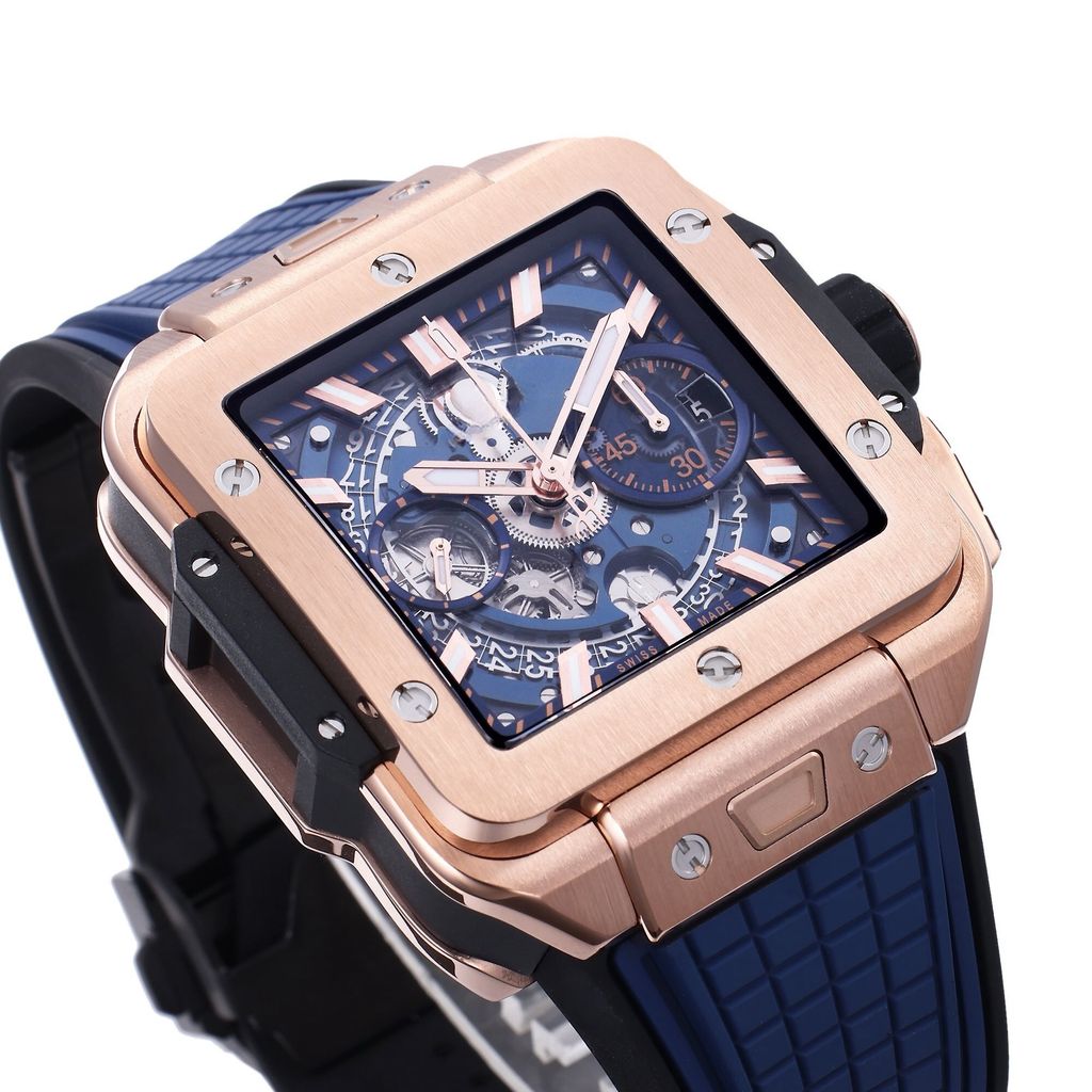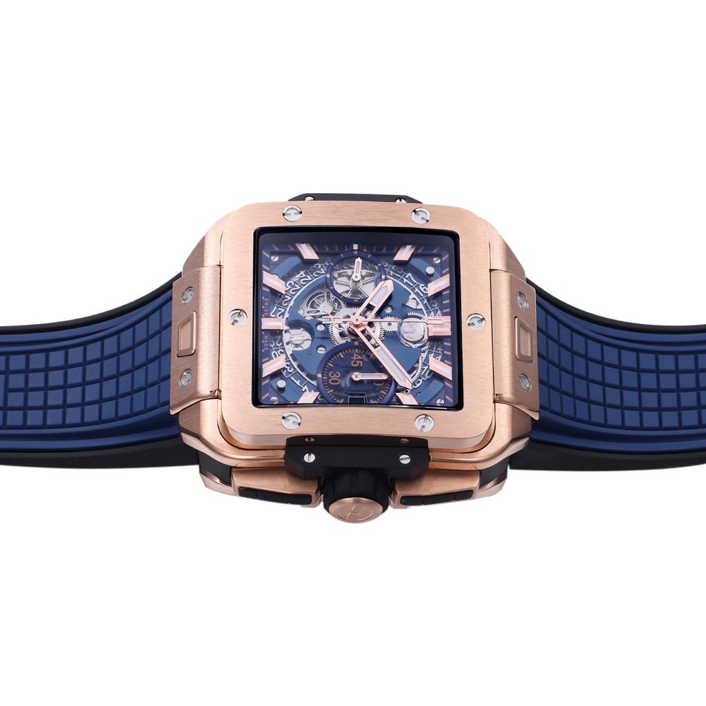 BBF Factory 42mm Top Replica Hublot Square Bang Unico Square Hollow Chronograph Dial 18K Rose Gold Rubber Strap Racing Sports Style
