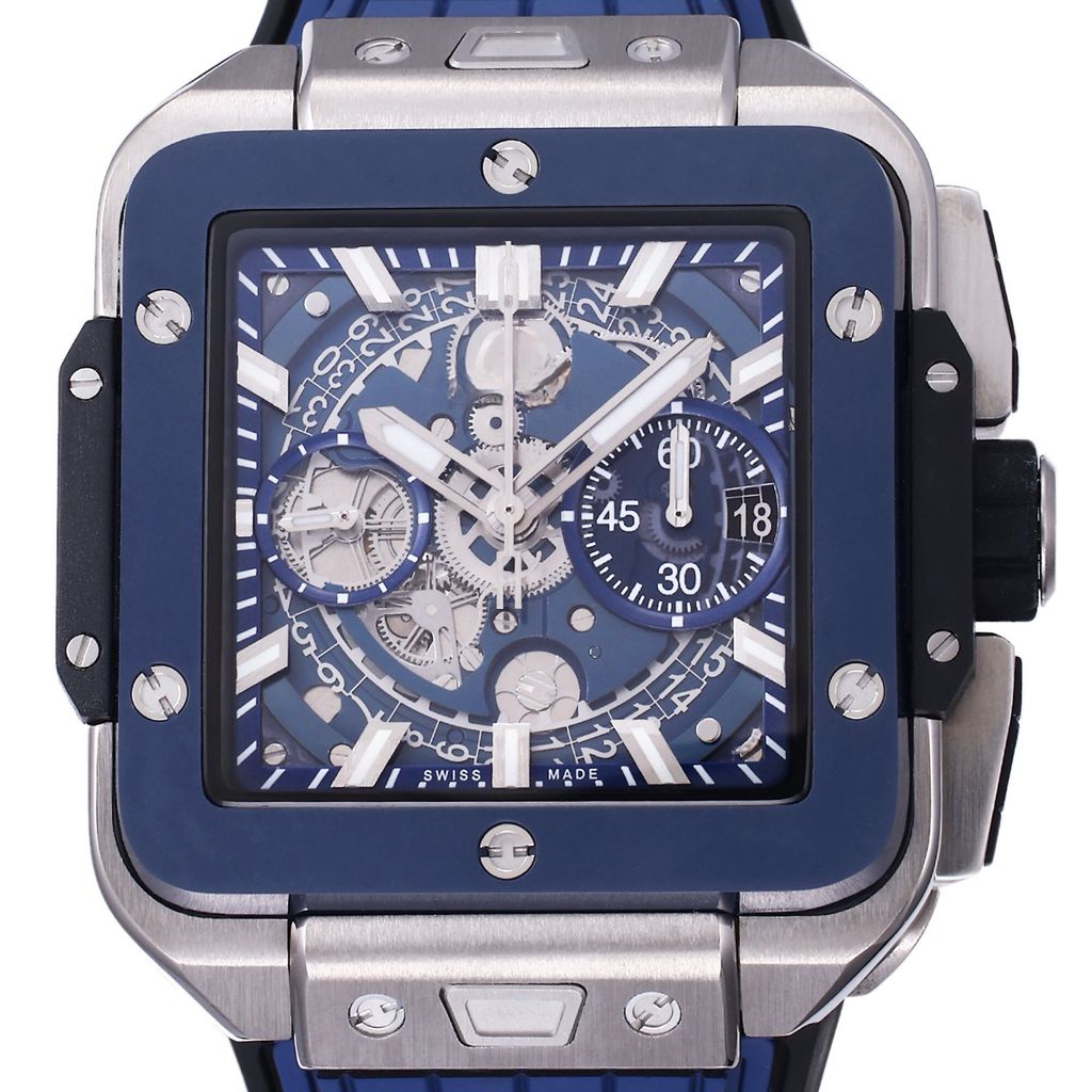 BBF Factory 42mm Top Replica Hublot Square Bang Unico Square Hollow Chronograph Dial Ceramic Bezel Rubber Strap Racing Sports Style