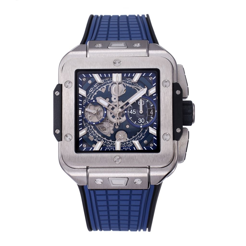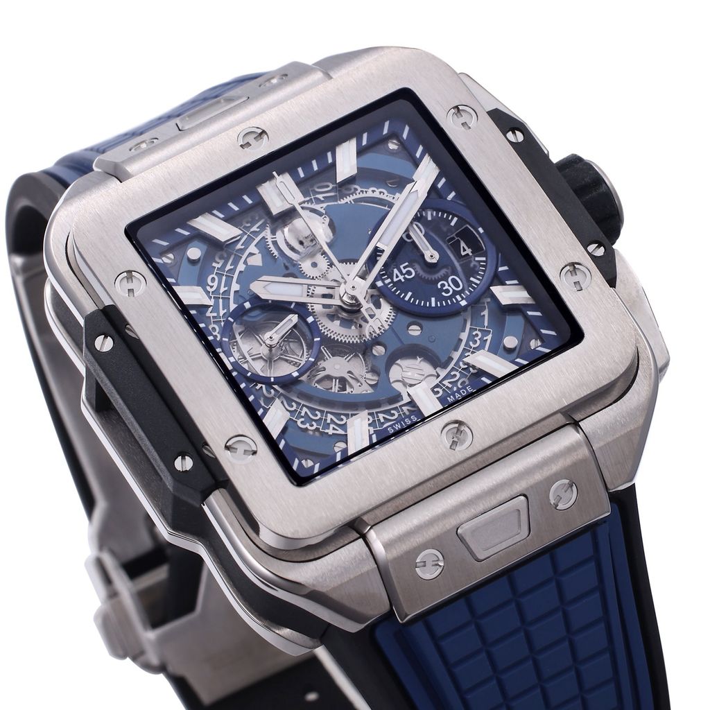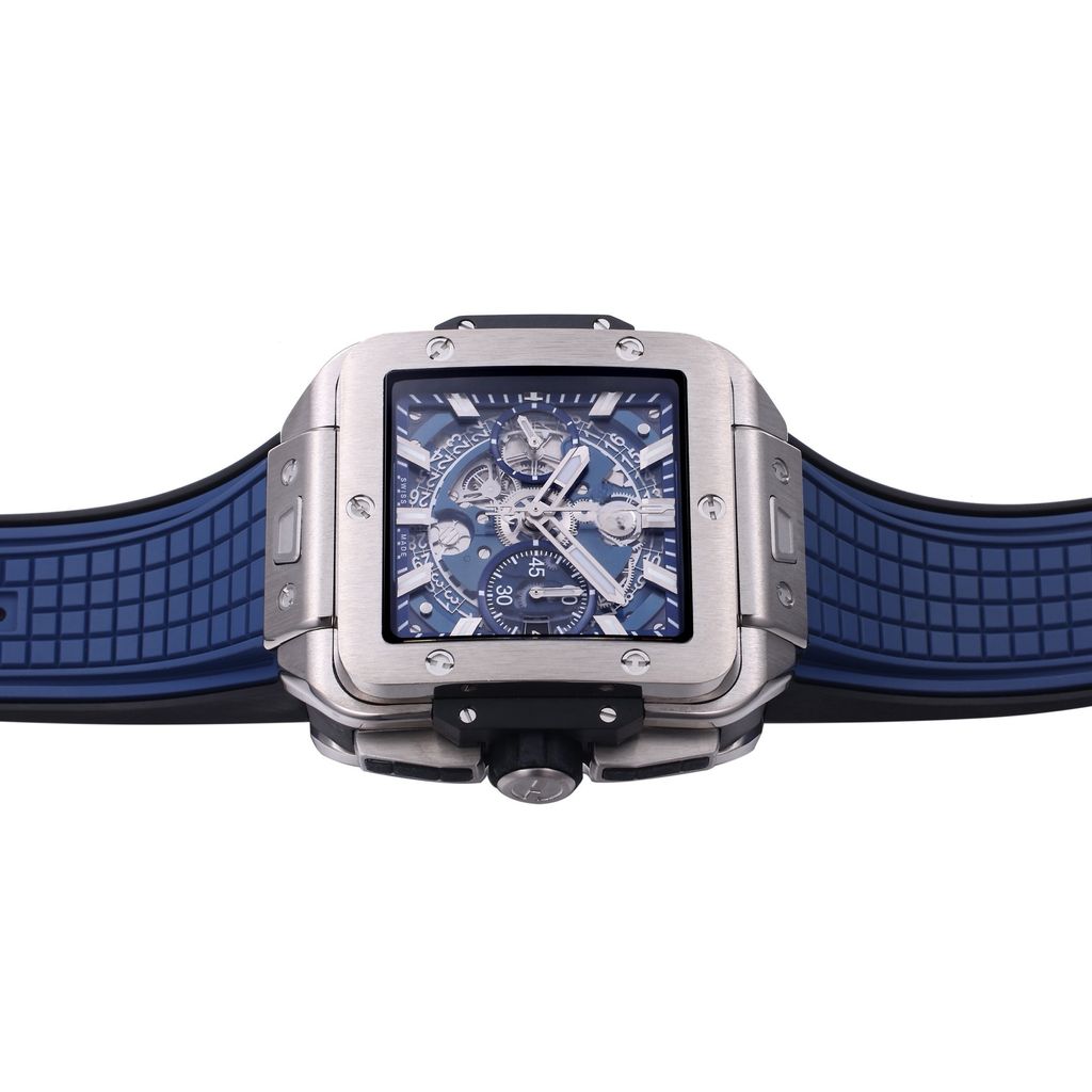 BBF Factory 42mm Top Replica Hublot Square Bang Unico Square Hollow Chronograph Dial Rubber Strap Racing Sports Style
