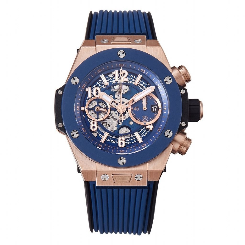 Top replica BBF factory HUBLOT BIGBANG series 42mm chronograph watch 18K rose gold with hollow dial and rubber strap 复制