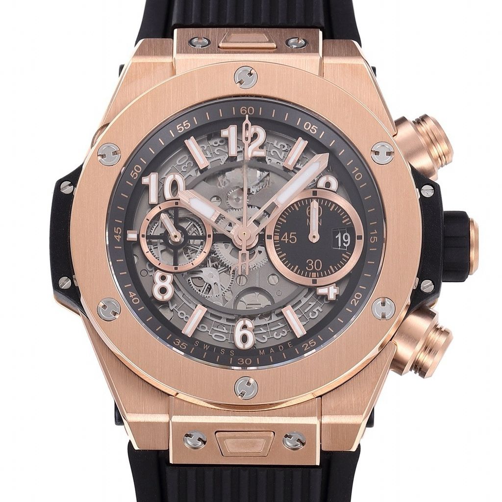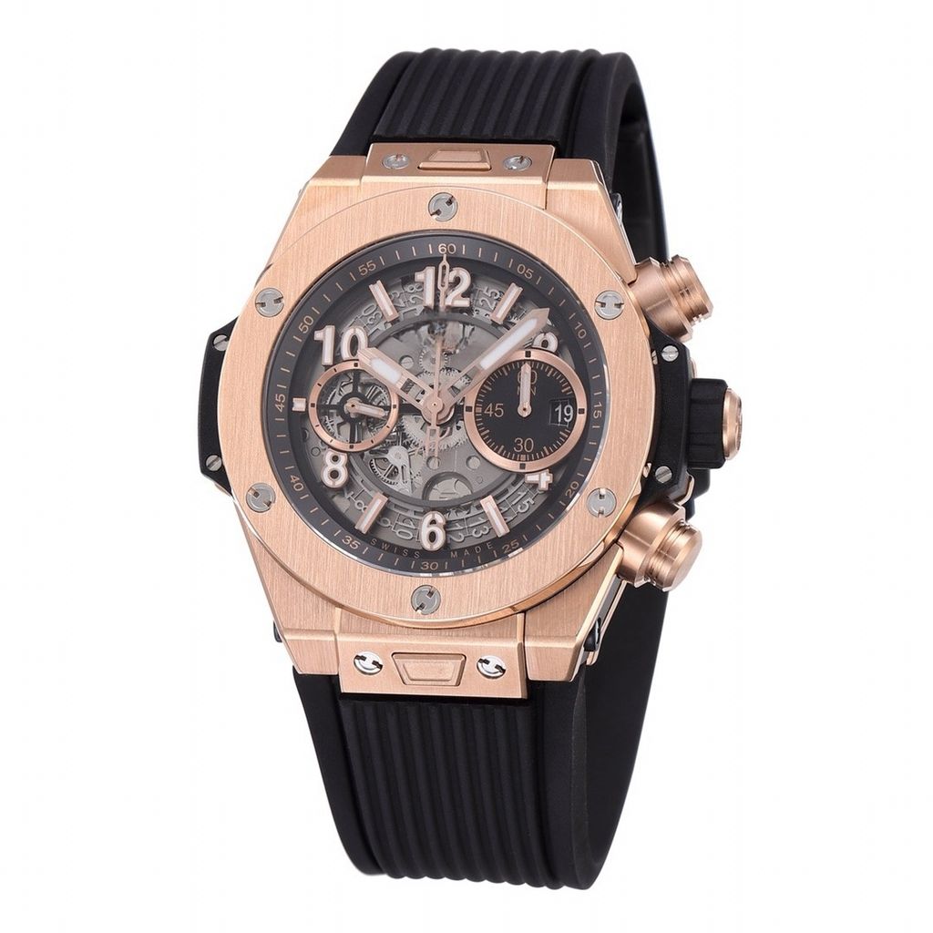 Top replica BBF factory HUBLOT BIGBANG series 42mm chronograph watch 18K ROSE GOLD with hollow dial and rubber strap