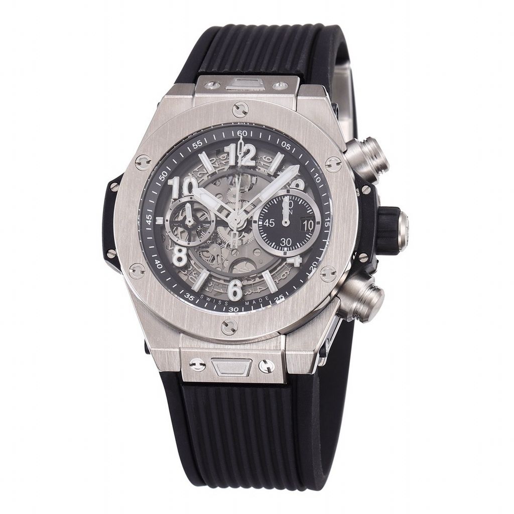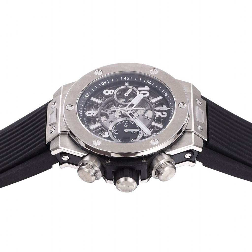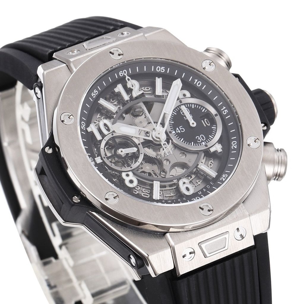 Top replica BBF factory HUBLOT BIGBANG series 42mm chronograph watch with hollow dial and rubber strap