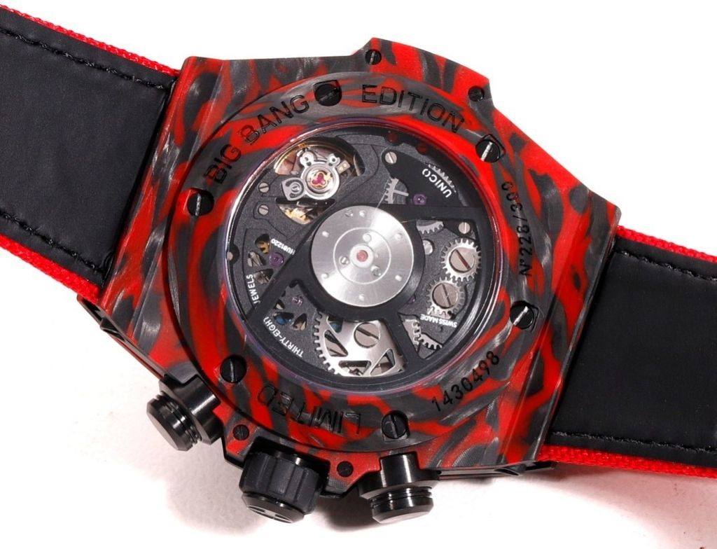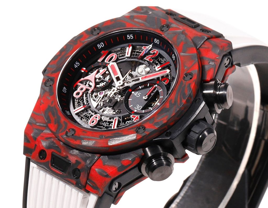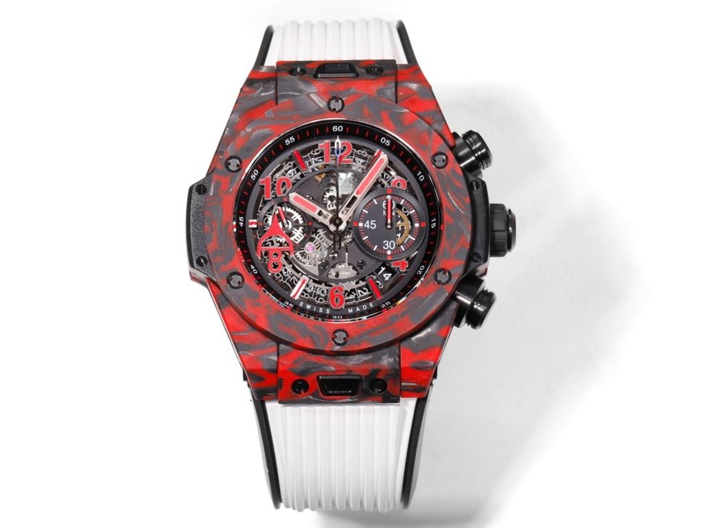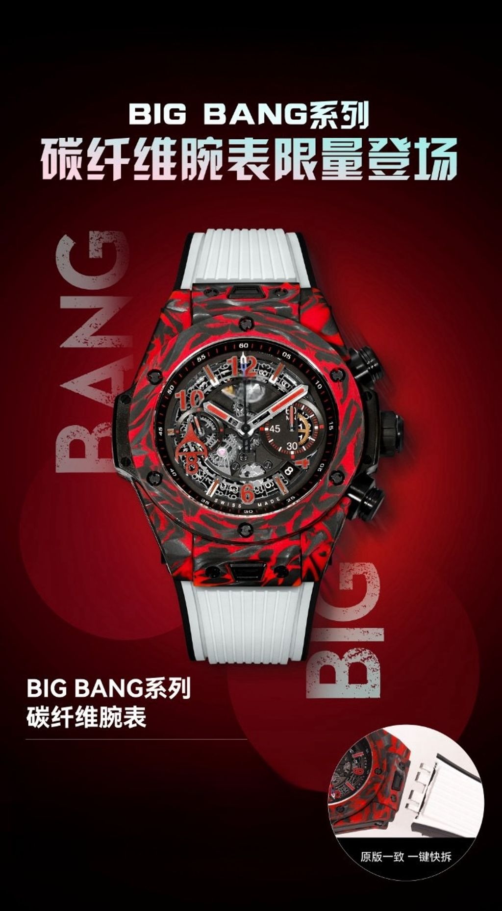 Luxury replica HB factory HUBLOT BIGBANG series limited edition chronograph watch red carbon fiber case quick release strap