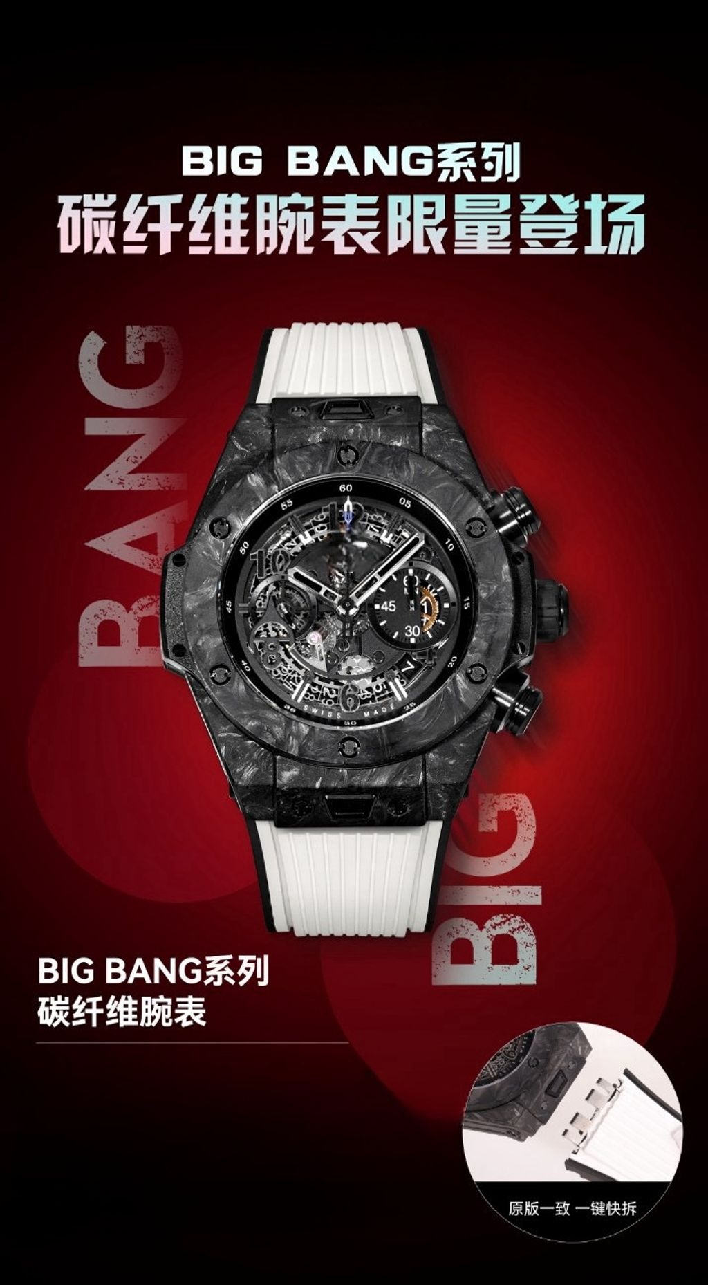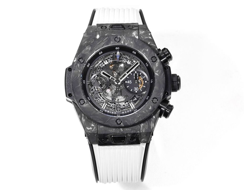 Top replica HB factory HUBLOT BIGBANG series limited edition chronograph watch black carbon fiber case quick release strap