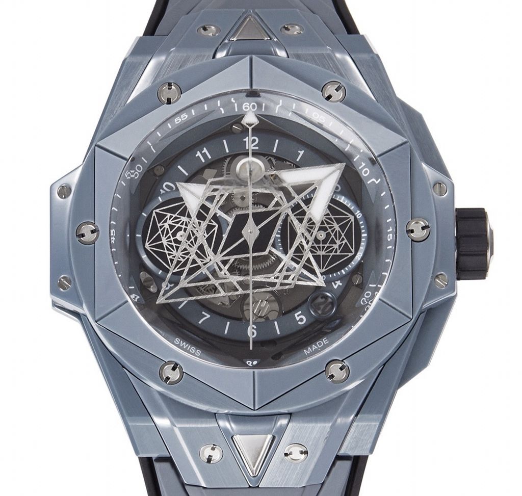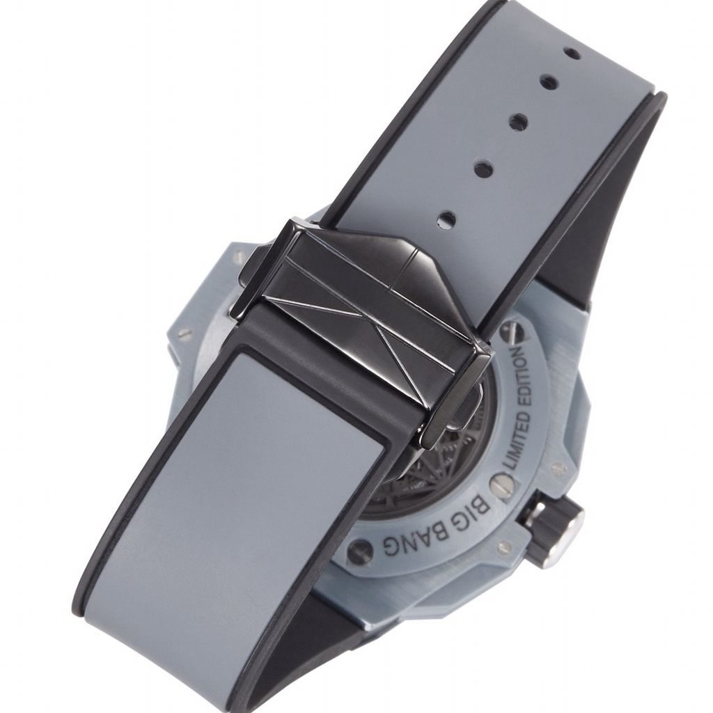 BBF Factory 45mm Top Replica Hublot Sang Bleu II Grey All-Ceramic Case Geometric Cut Hexagonal Dial Chronograph Watch Rubber Strap