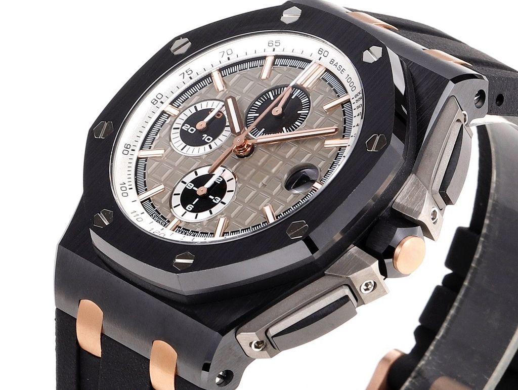 Luxury replica Audemars Piguet Royal Oak Offshore 26415CE DRAK GREY MegaTapisserie Dial 44mm Chronograph Rubber Strap 复制