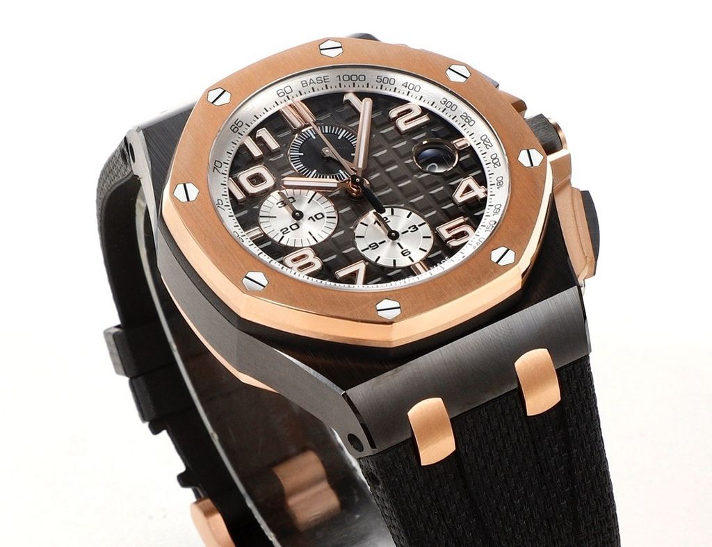 Luxury replica sports JF factory Audemars Piguet Royal Oak Offshore 26405NR smoked gray MegaTapisserie Dial 44mm chronograph rubber strap