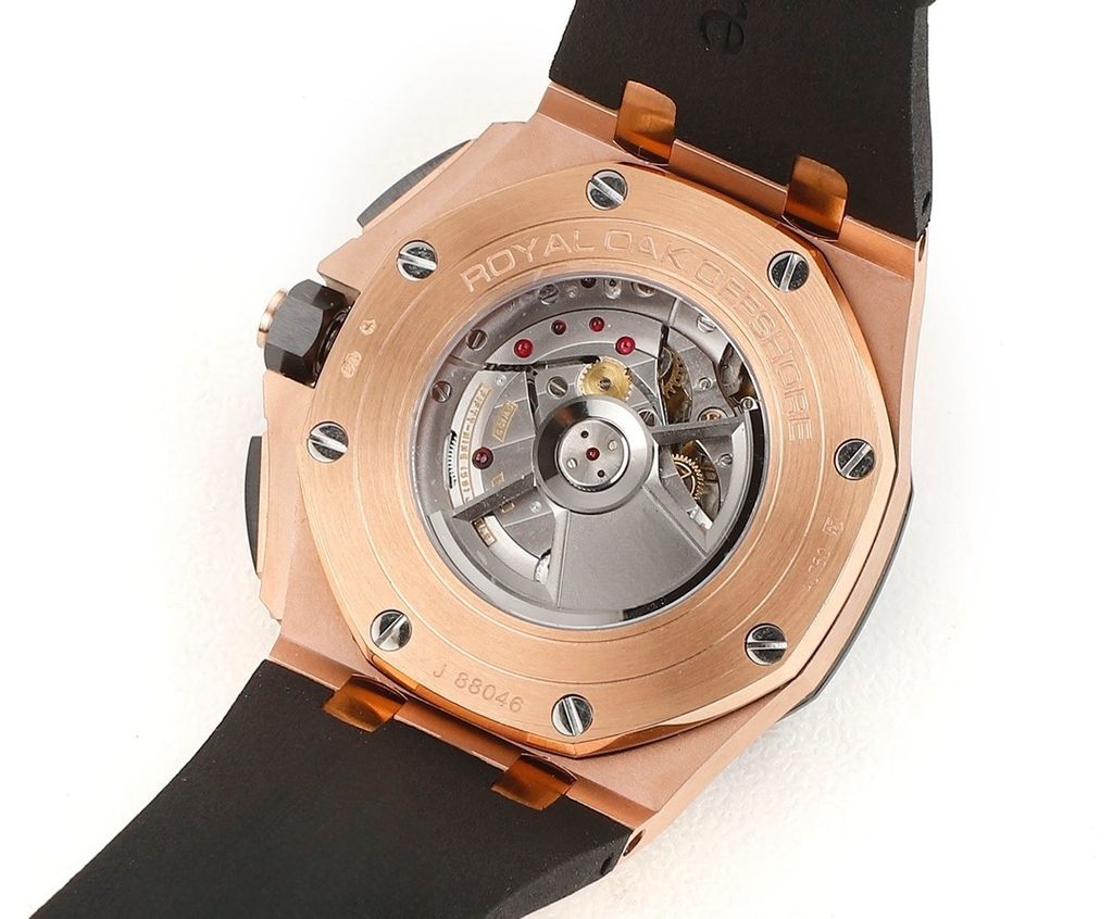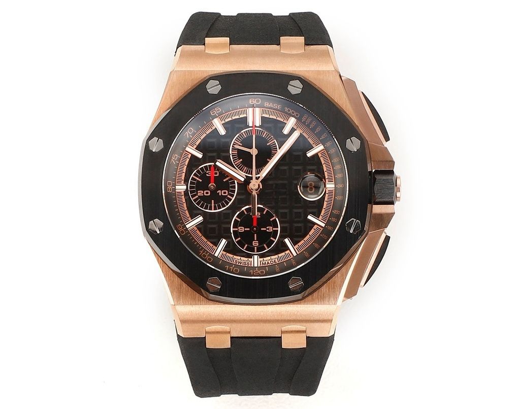 Top replica JF sports Audemars Piguet Royal Oak Offshore 26401RO Black MegaTapisserie Dial 44mm Red and Blue Chronograph Rubber Strap