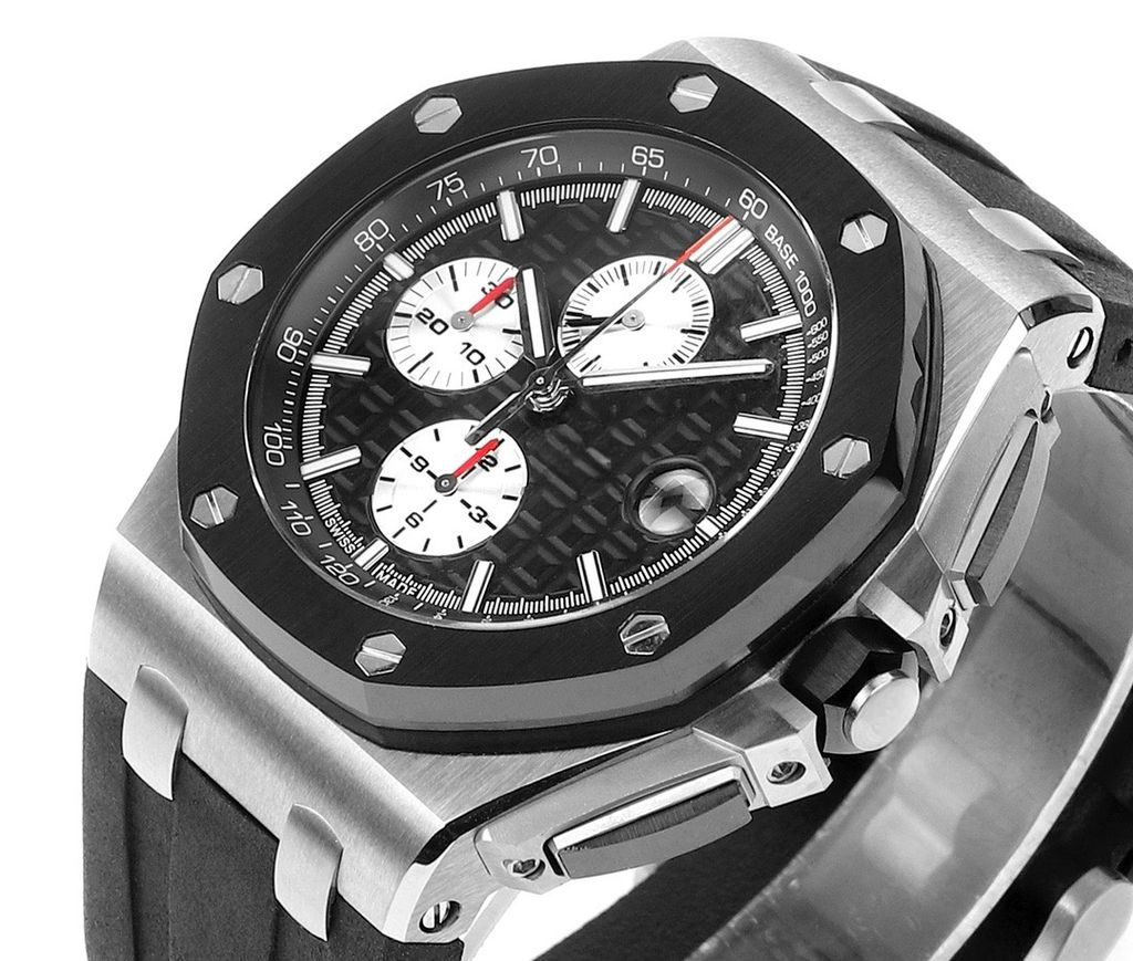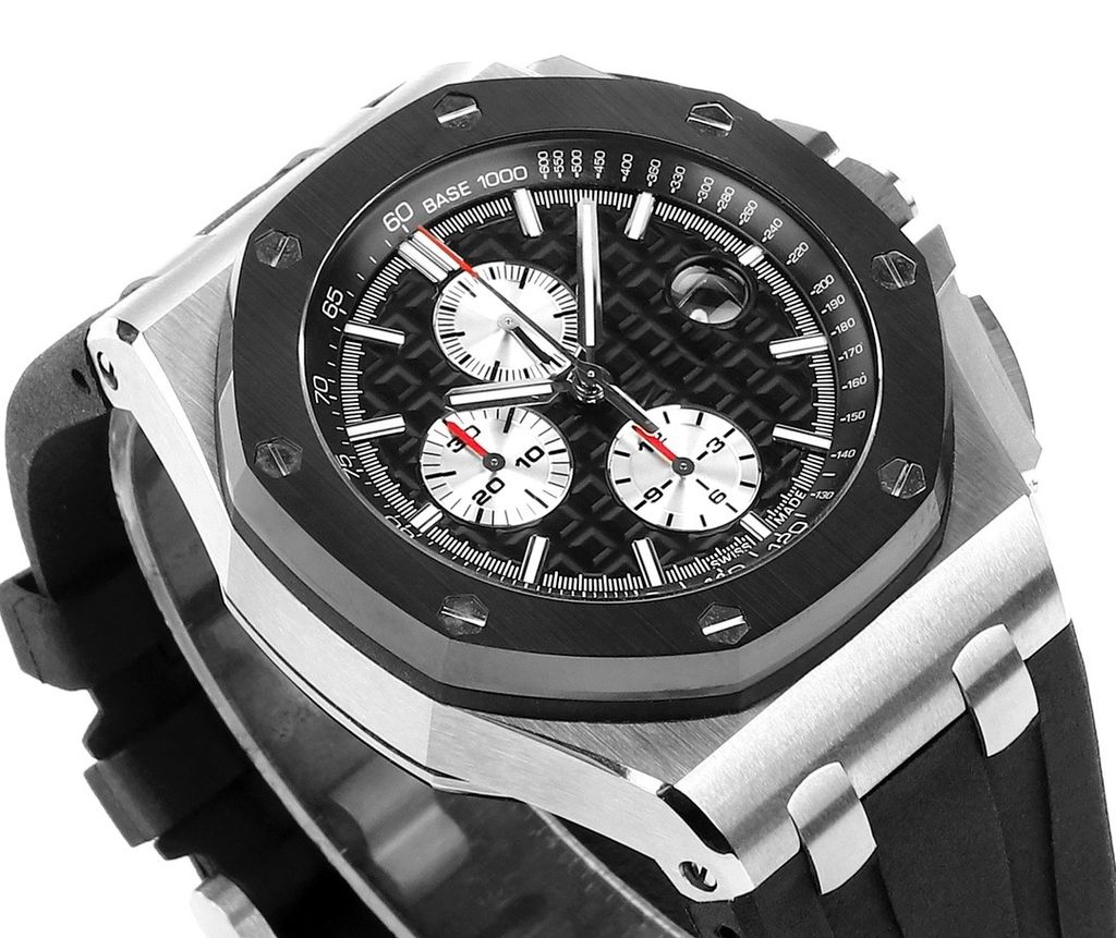 Luxury replica sports JF factory Audemars Piguet Royal Oak Offshore 26400 black MegaTapisserie Dial 44mm chronograph rubber strap