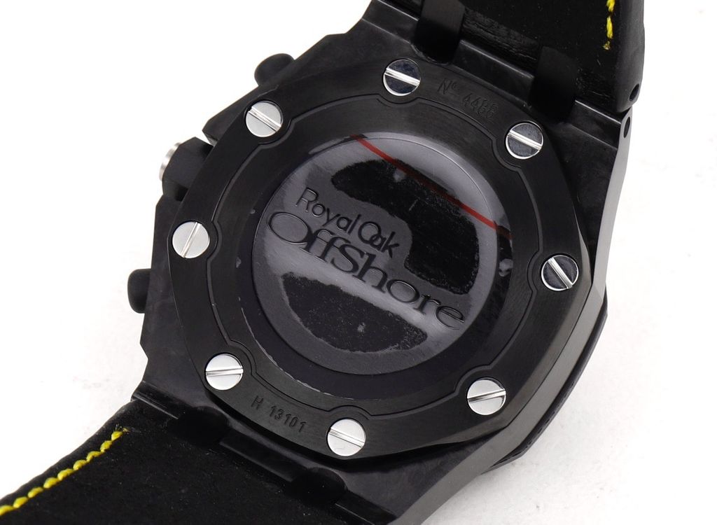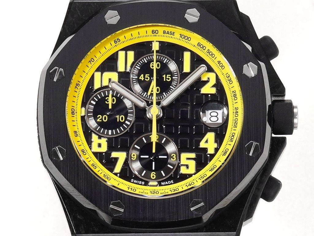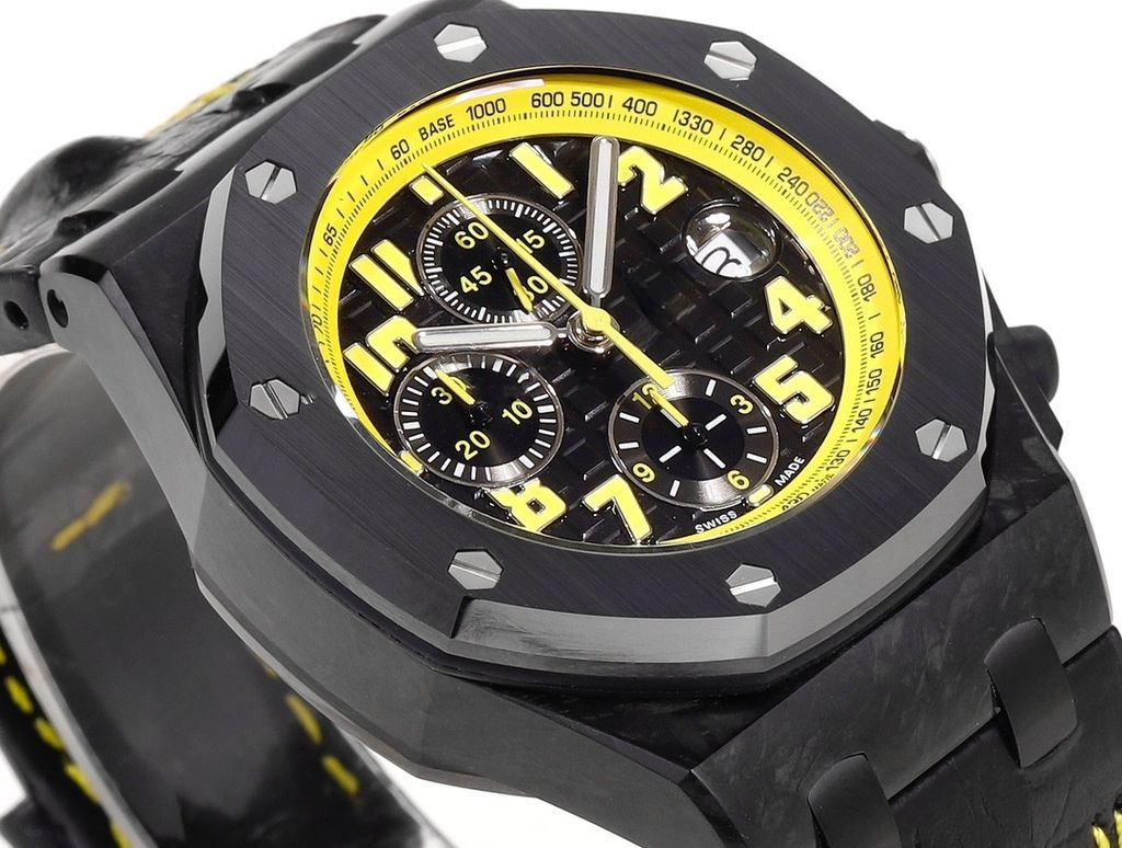 Top replica sports Audemars Piguet Royal Oak Offshore 26176FO Yellow and black MegaTapisserie Dial Arabic numerals 42mm chronograph genuine leather strap