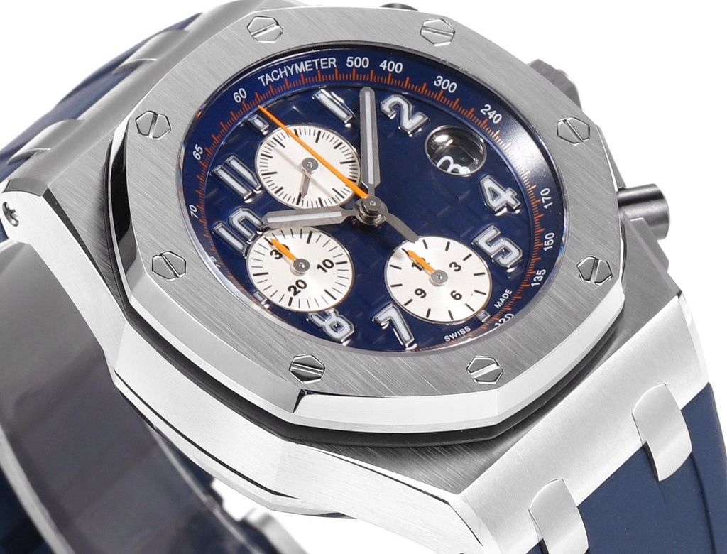 Luxury Fashion Replica Sports Audemars Piguet Royal Oak Offshore 26470ST Blue MegaTapisserie Dial 42mm Arabic Numerals Chronograph Rubber Strap