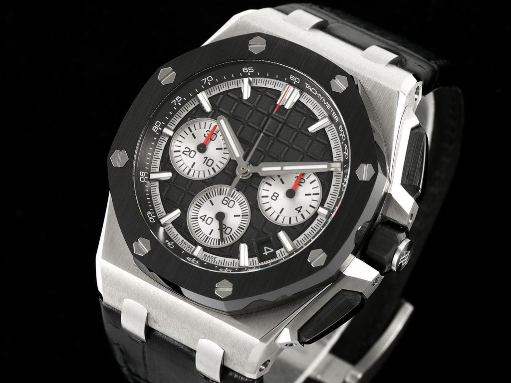 Luxury top replica Audemars Piguet Royal Oak Offshore 26420SO Black MegaTapisserie Dial 43mm Chronograph Quick Release Rubber or Leather Strap