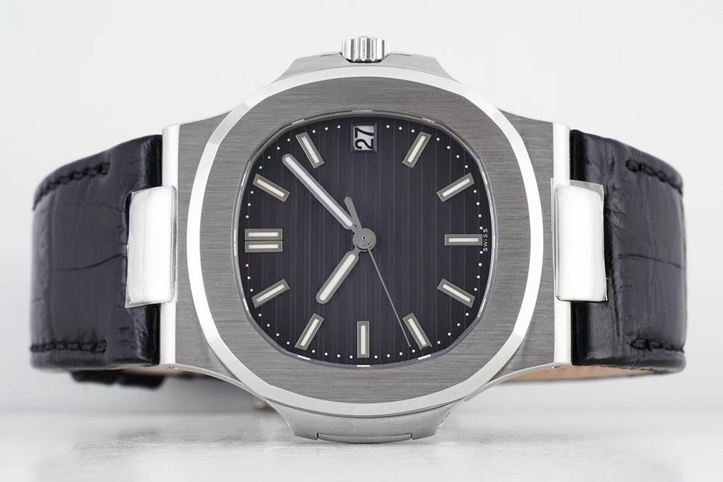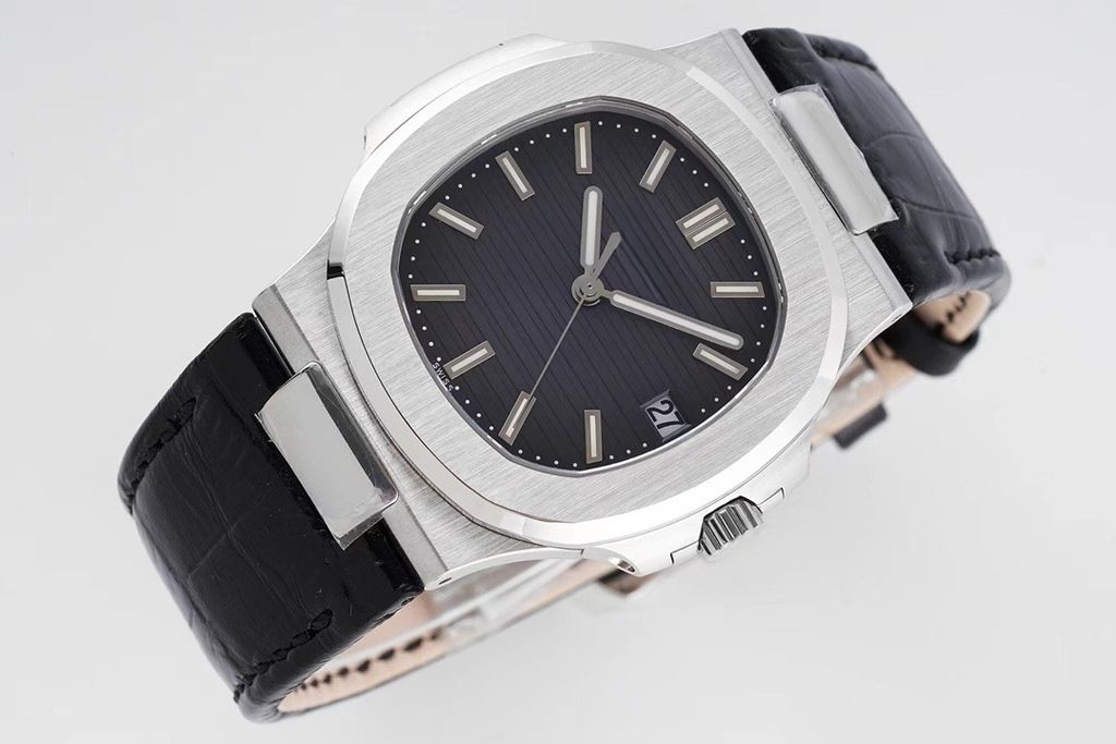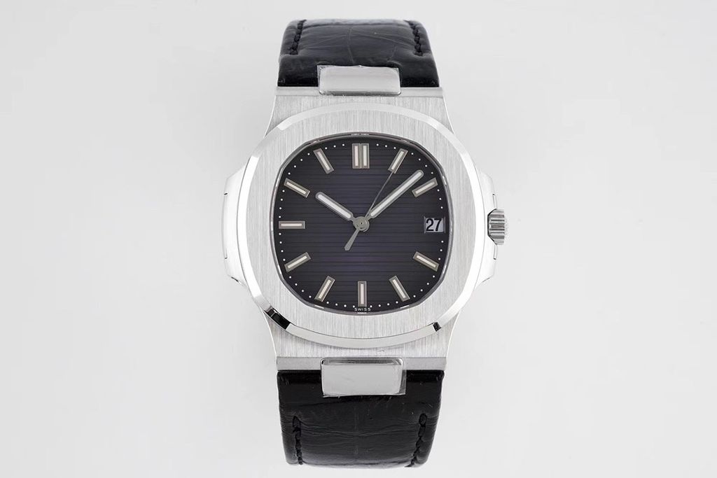 Luxury replica Patek Philippe 5711 sports elegant 40MM ultra-thin watch 18K rose gold dark gray dial Nautilus leather strapBrand: Patek Philippe