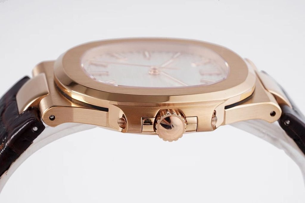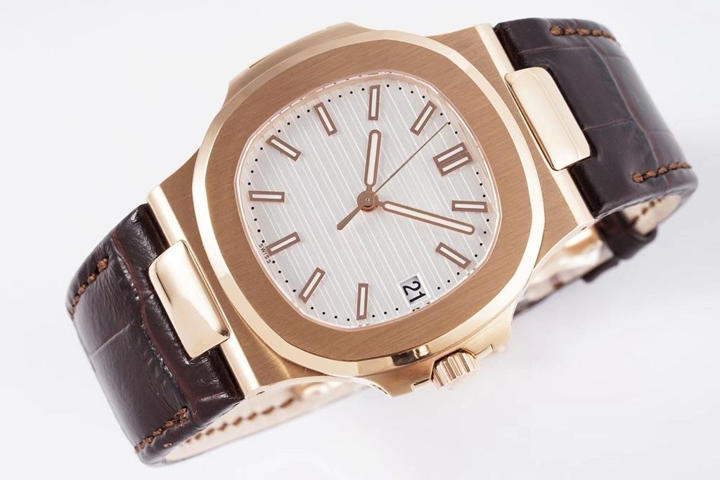 Top luxury replica Patek Philippe 5711 sports elegant 40MM ultra-thin watch 18K rose gold white dial Nautilus leather strap