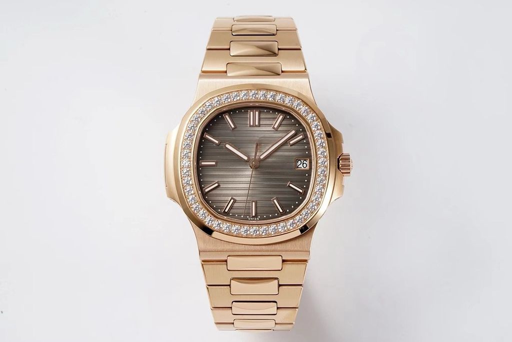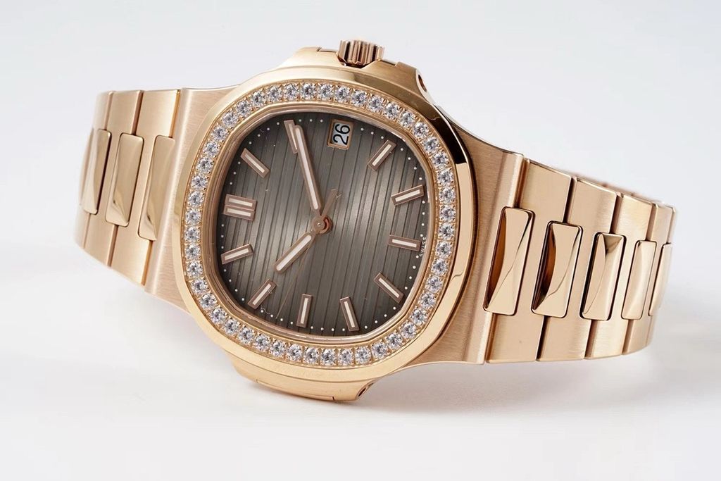 Top luxury replica Patek Philippe 5711 sports elegant 40MM ultra-thin watch 18K rose gold dark brown dial Nautilus stainless steel strap