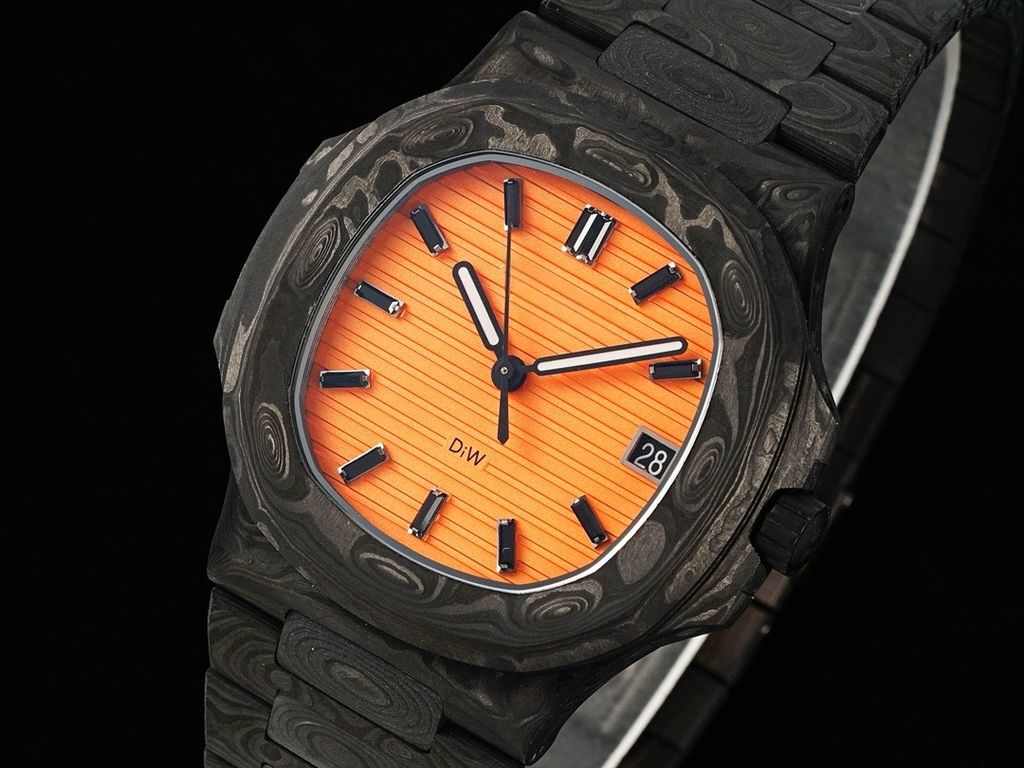 Top replica luxury Patek Philippe Golden Eagle 5711 DiW ALL CARBON BLACK Orange dial Nautilus personality avant-garde fashion trend