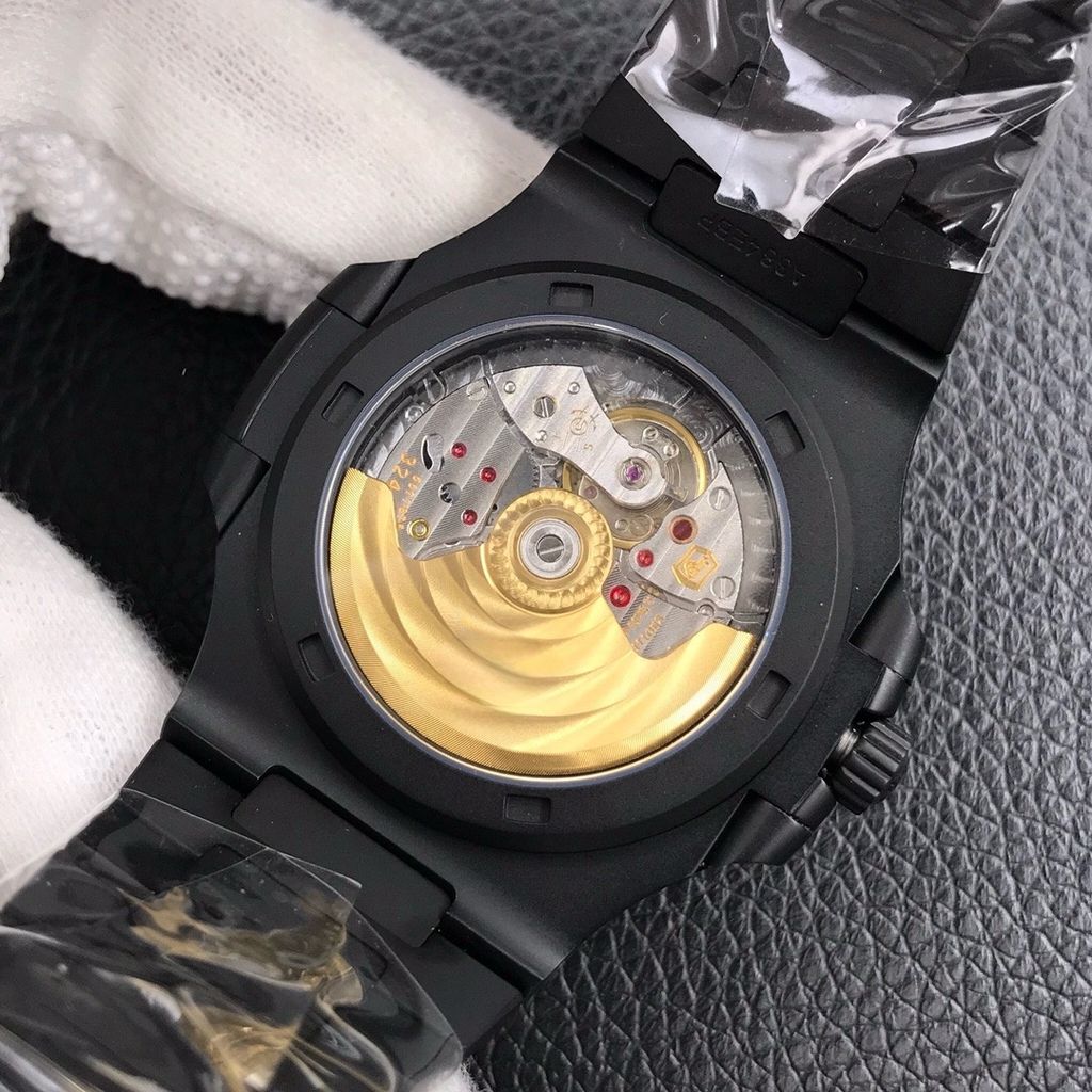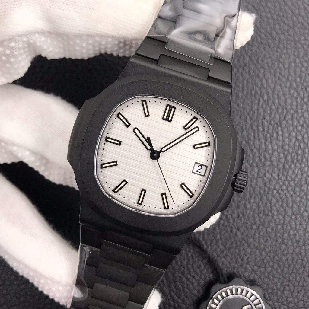 Luxury replica Patek Philippe 5711 sports elegance 40MM ultra-thin watch DLC version all black white dial Nautilus stainless steel strap 复制