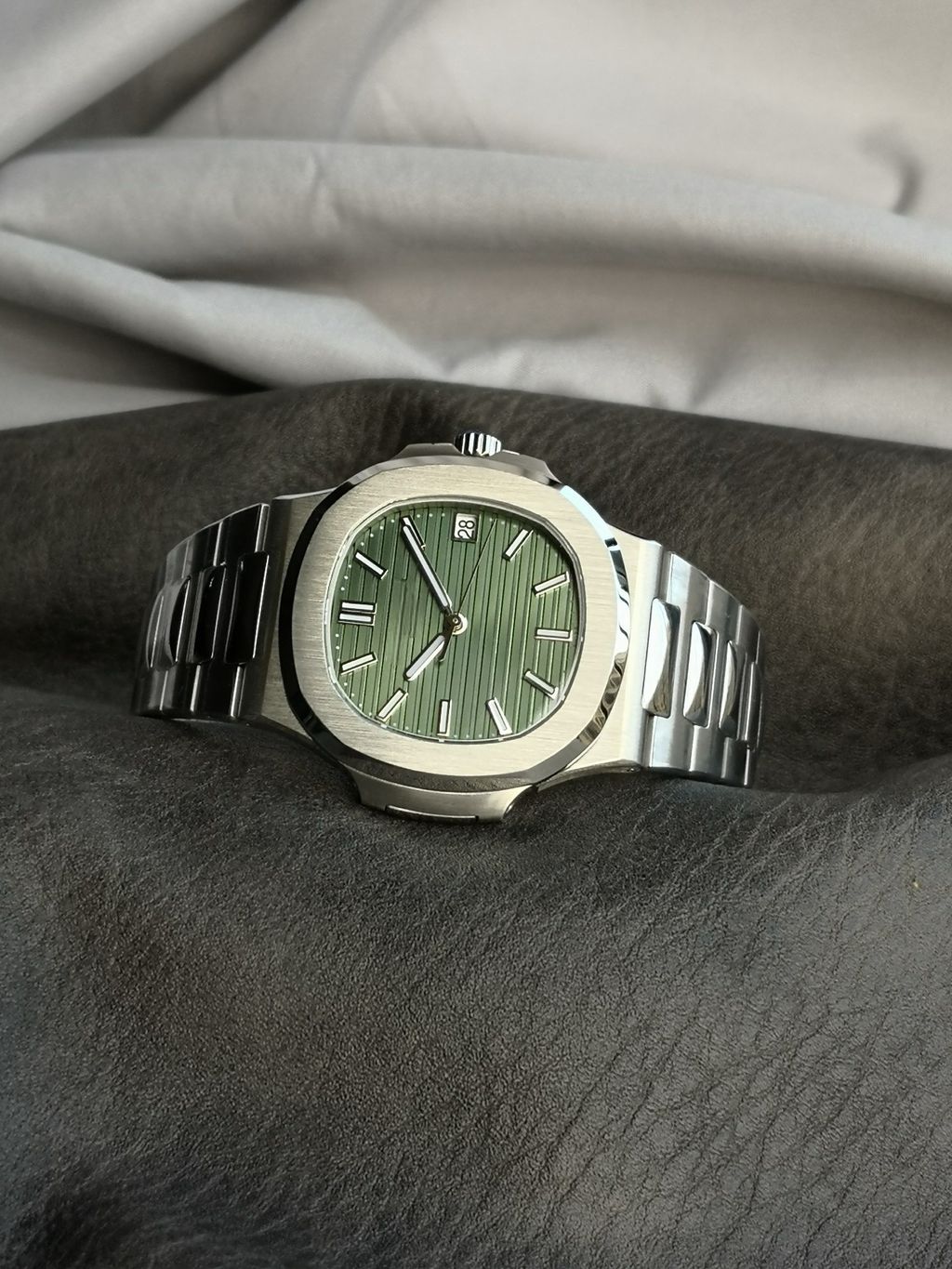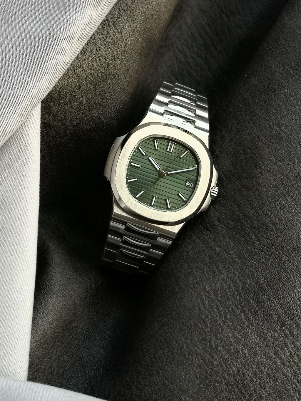 ultra-thin watch green dial Nautilus stainless steel strap