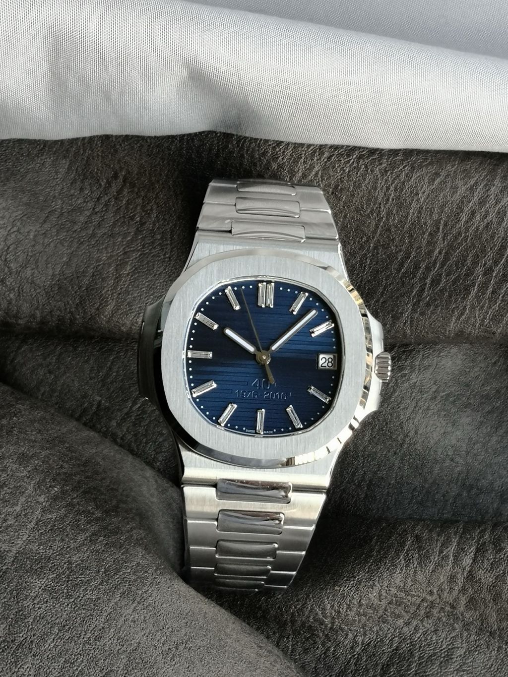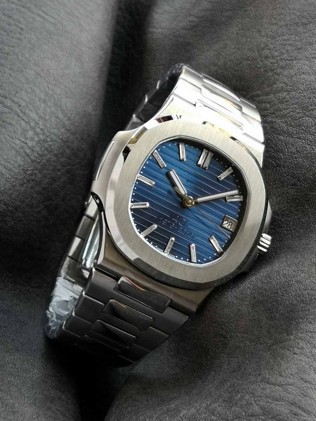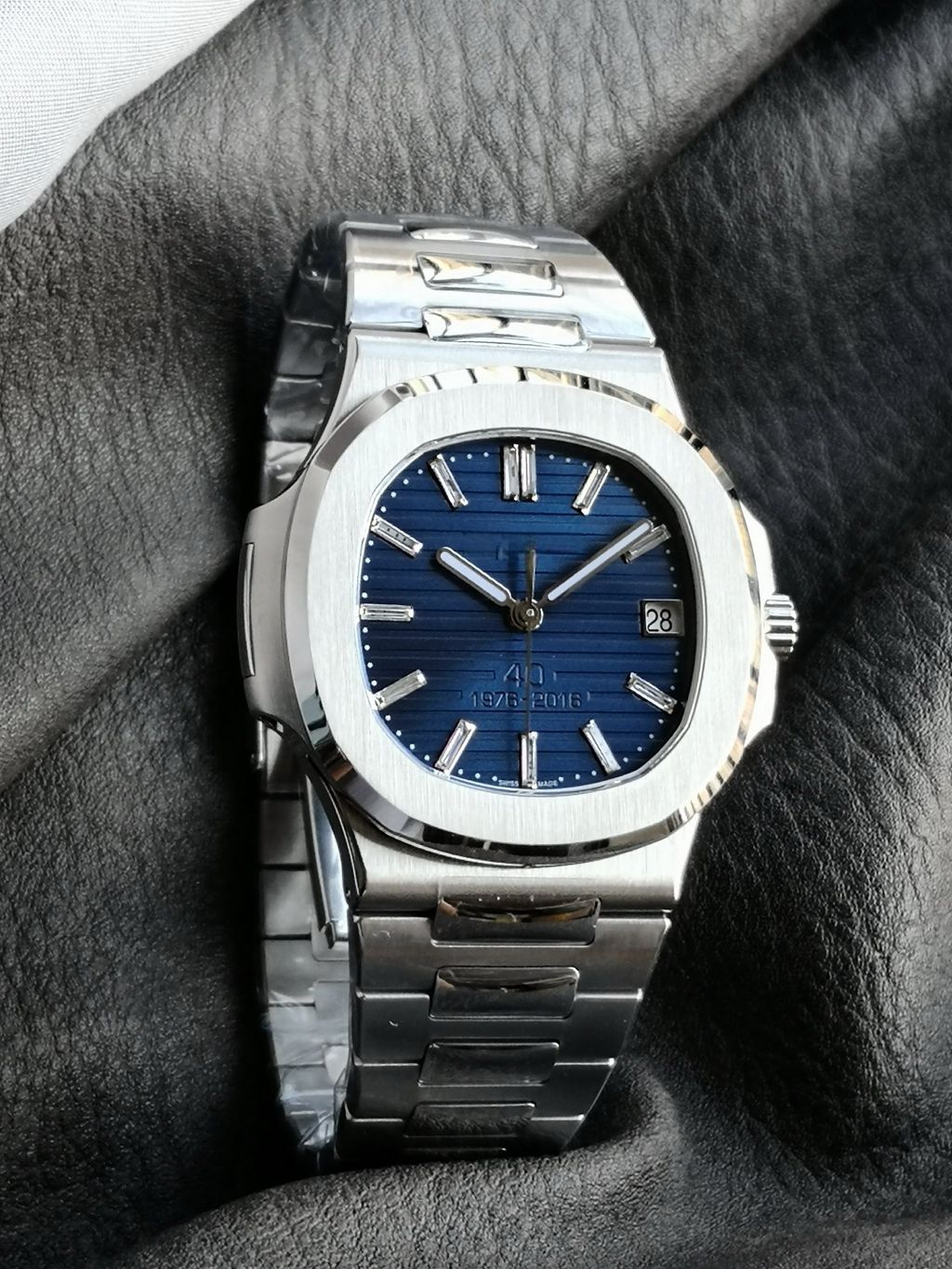 40MM 3KF luxury replica Patek Philippe 5711 sports elegance 40th 1976-2016 anniversary ultra-thin watch blue dial Nautilus stainless steel strap