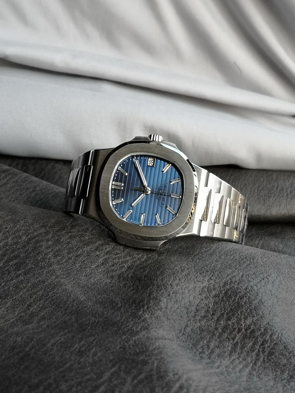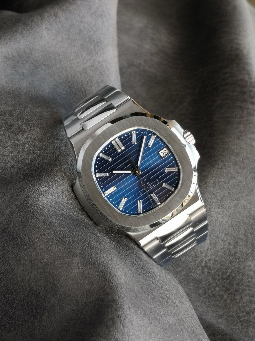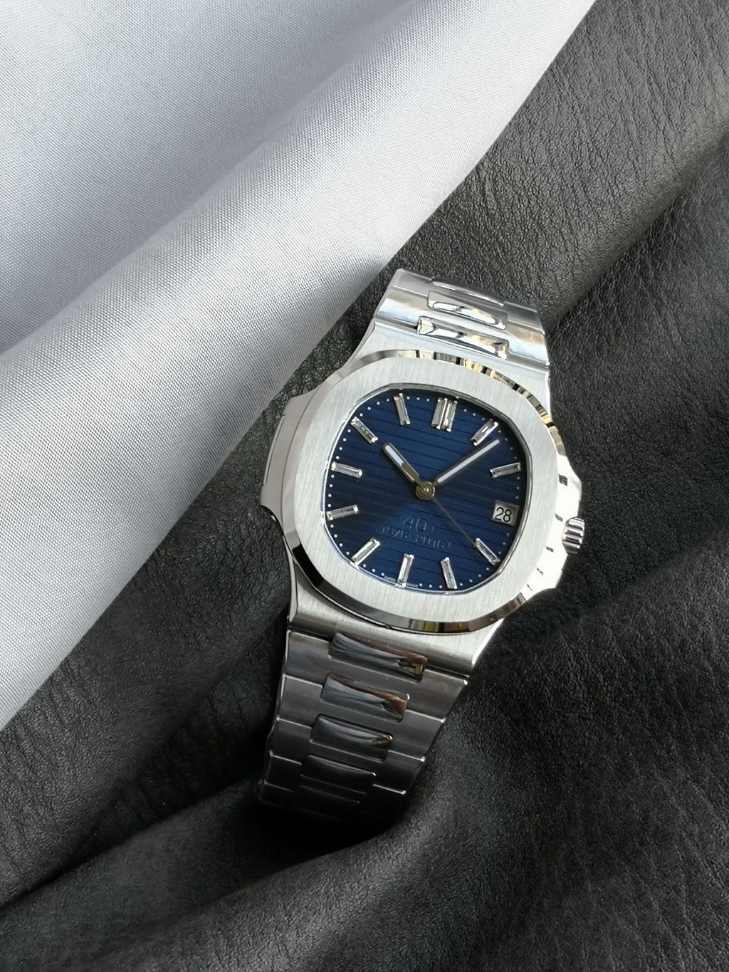 40MM 3KF luxury replica Patek Philippe 5711 sports elegance 40th 1976-2016 anniversary ultra-thin watch blue dial Nautilus stainless steel strap