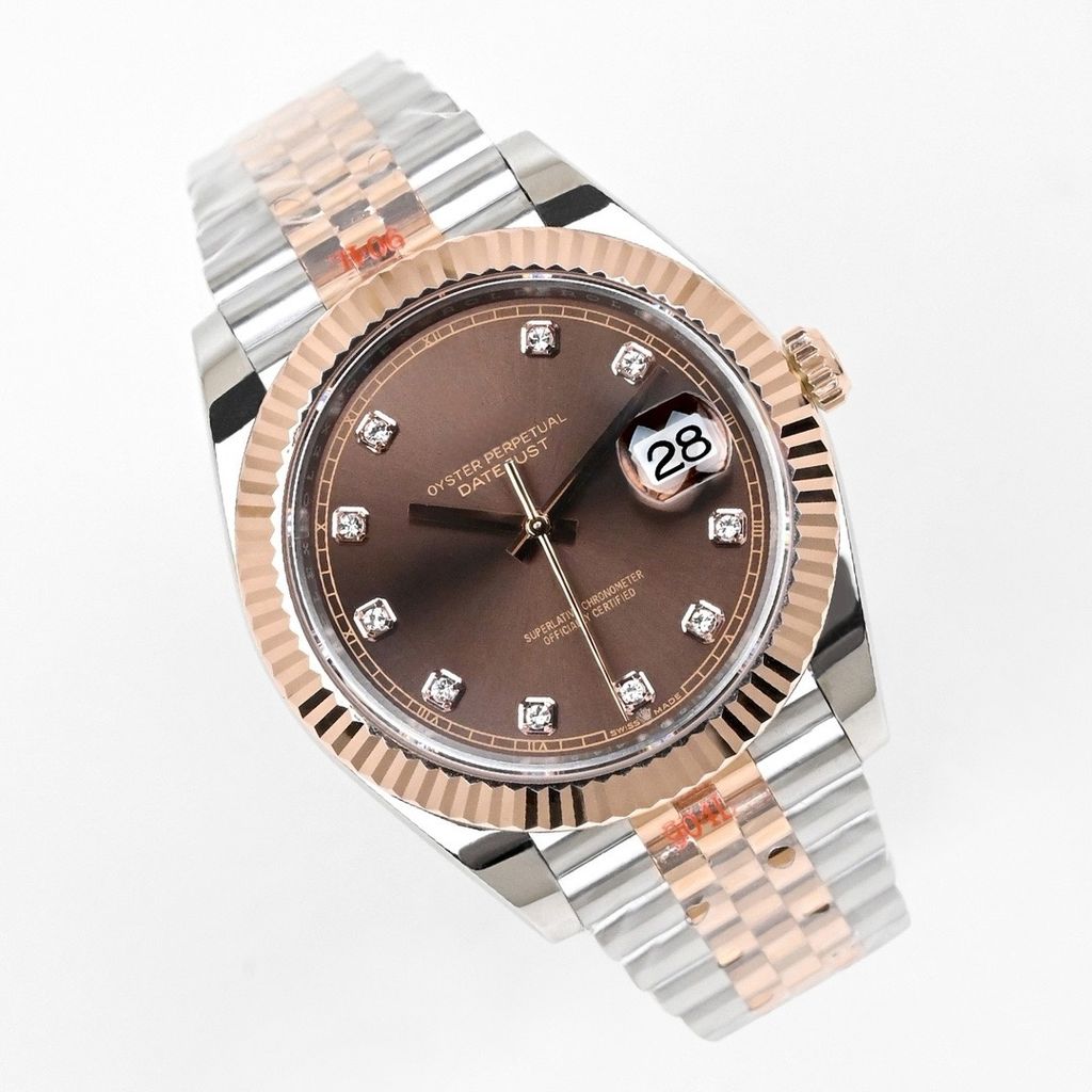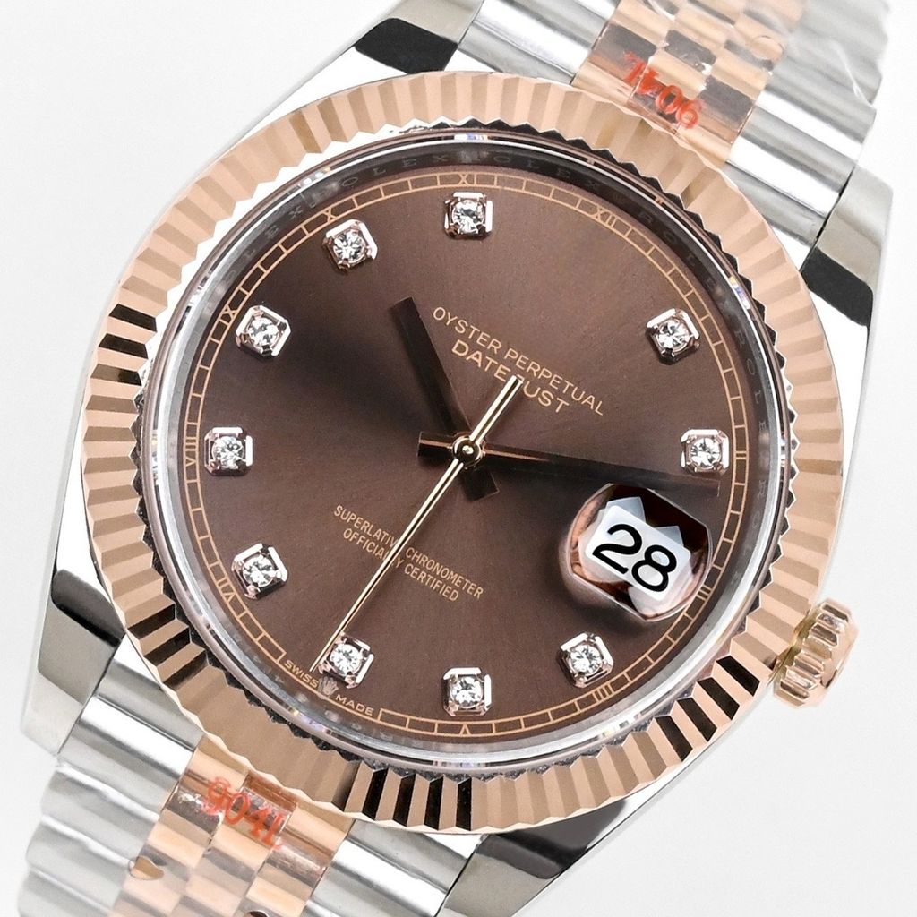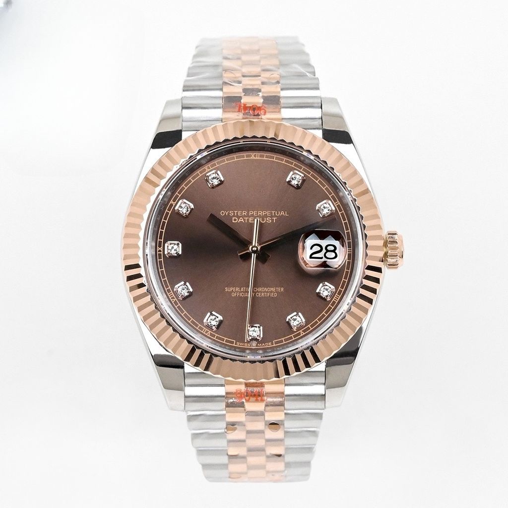Top luxury replica Rolex datejust 126331 coffee color diamond dial 41mm 18k rose gold stainless steel strap weight versionBrand:Rolex