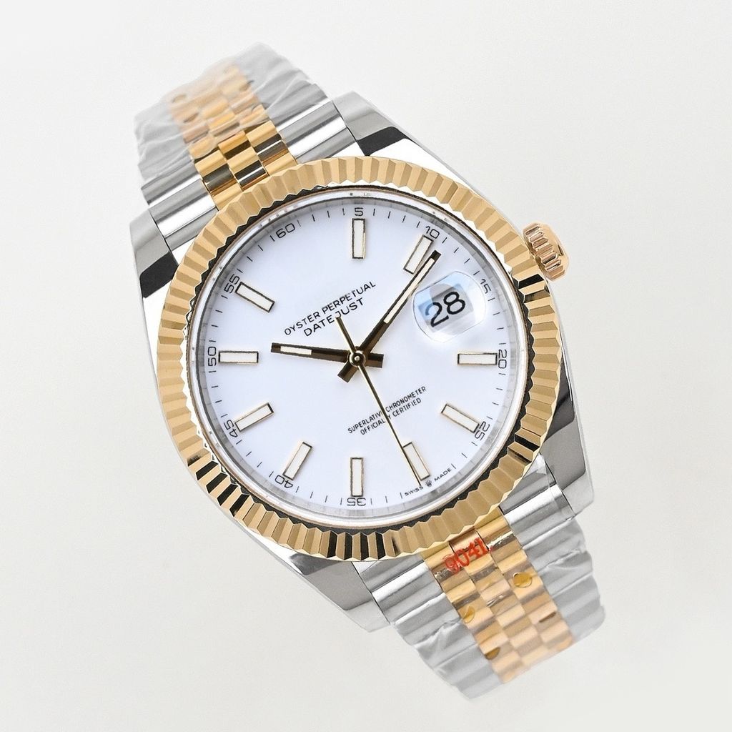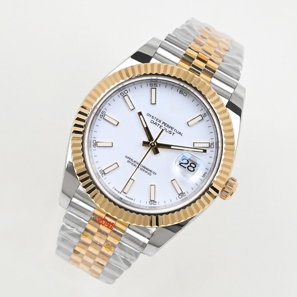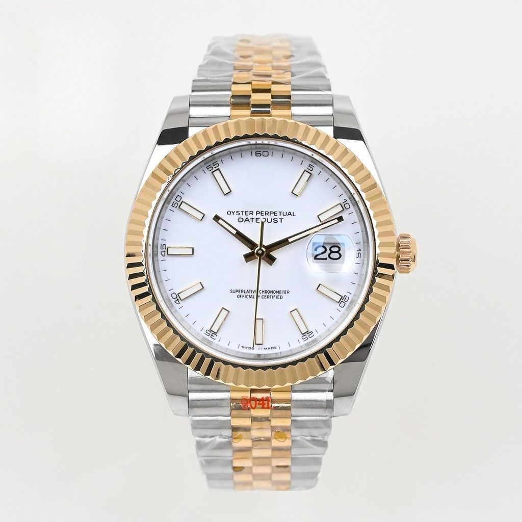 Luxury replica Rolex Datejust 126333 milky white striped dial 41mm 18K gold stainless steel weight version