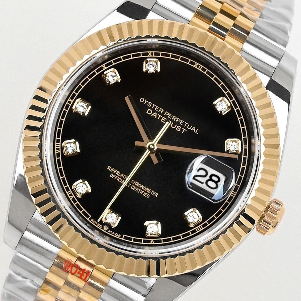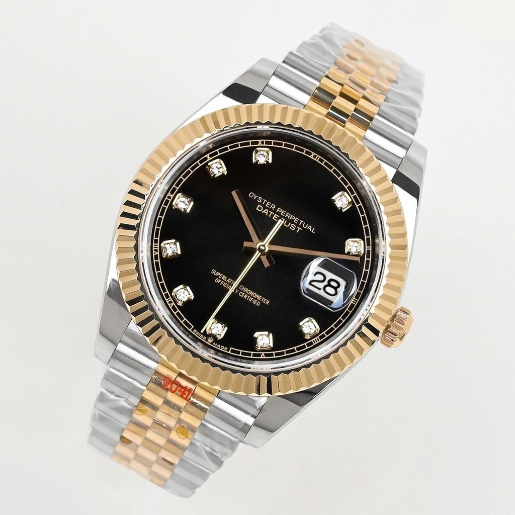 Luxury replica Rolex Datejust 126333 black diamond dial 41mm 18K gold stainless steel weight version