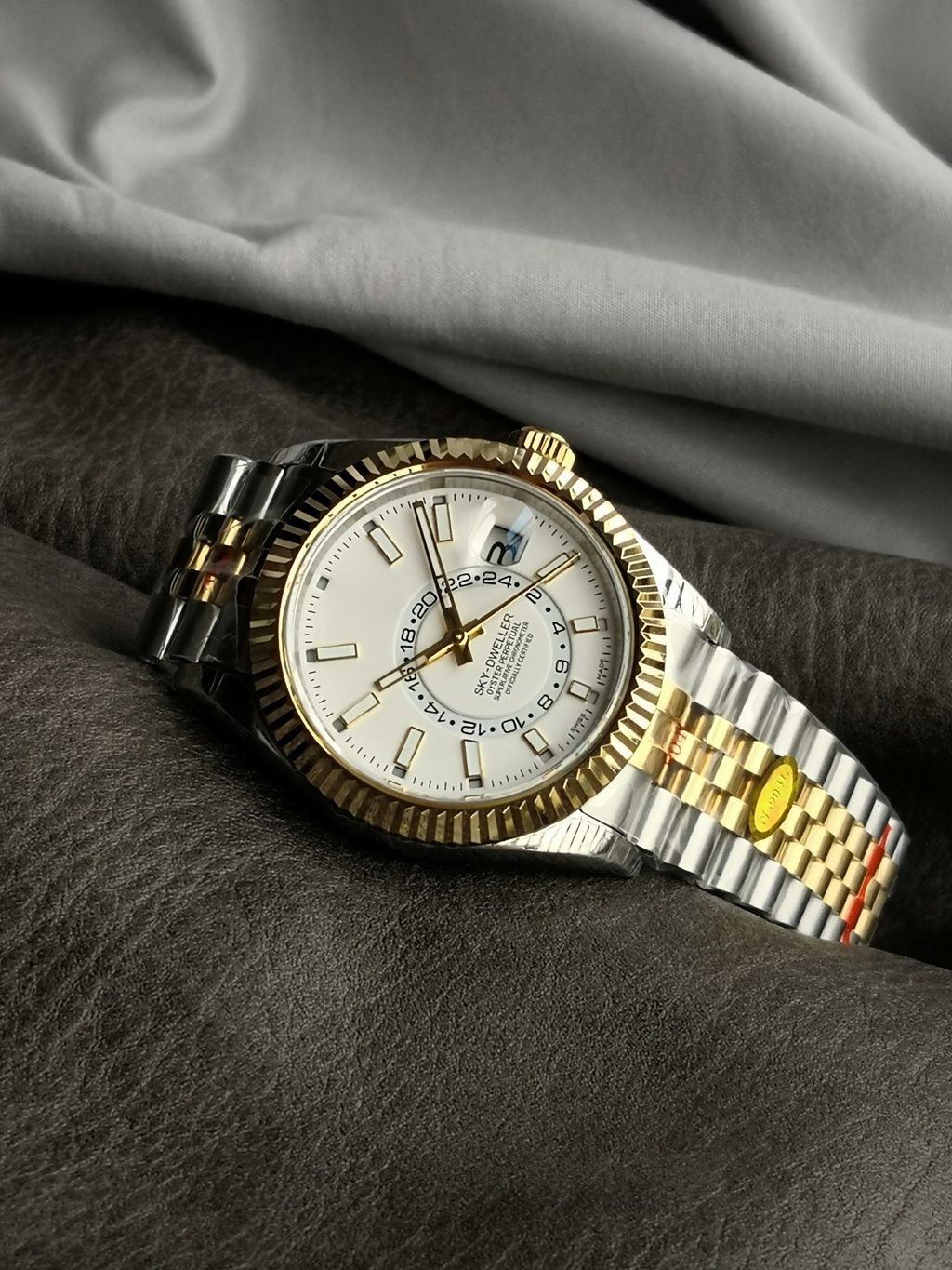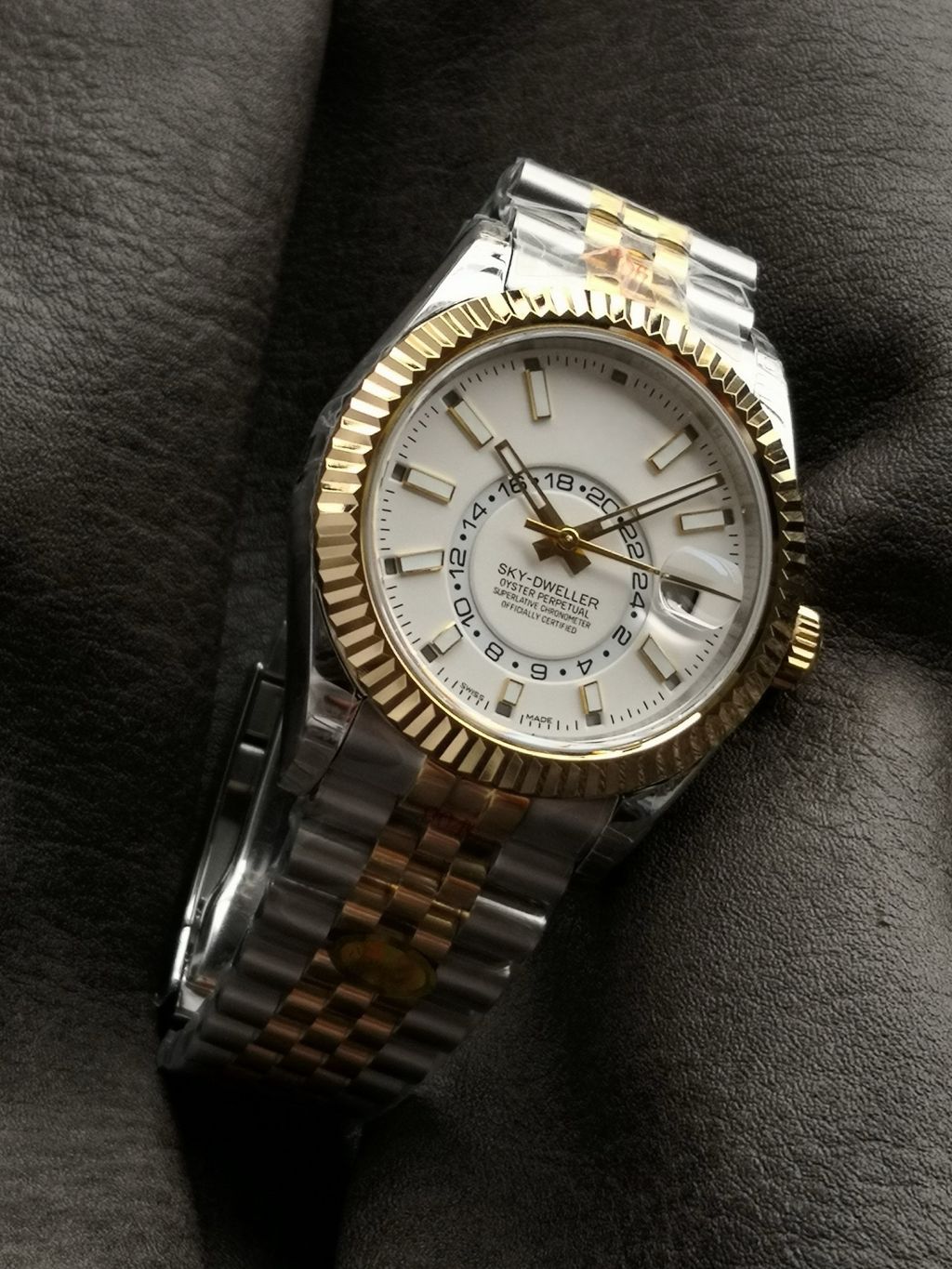 Replica Rolex M336933-0006 Sky-Dweller NOOB factory 9002 movement white dial 18K gold sapphire glass