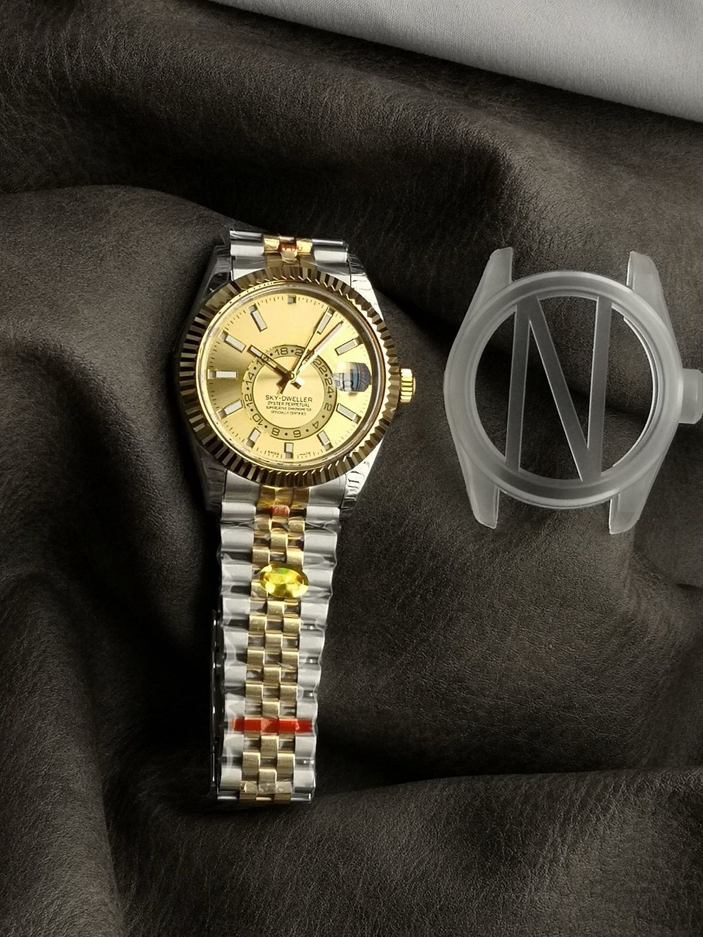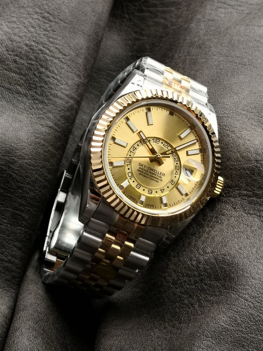 NOOBF Luxury Annual Calendar Homage replica Rolex M336933-0002 SKY-DWELLER 9002 MOVEMENT GOLDDIAL sapphire glass