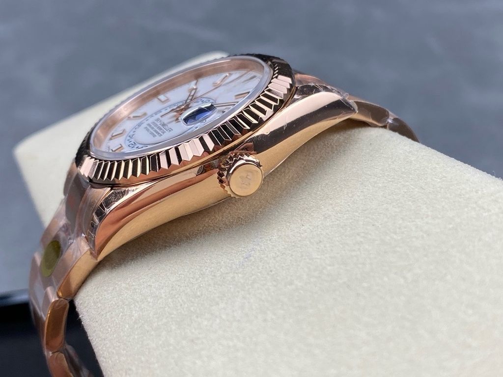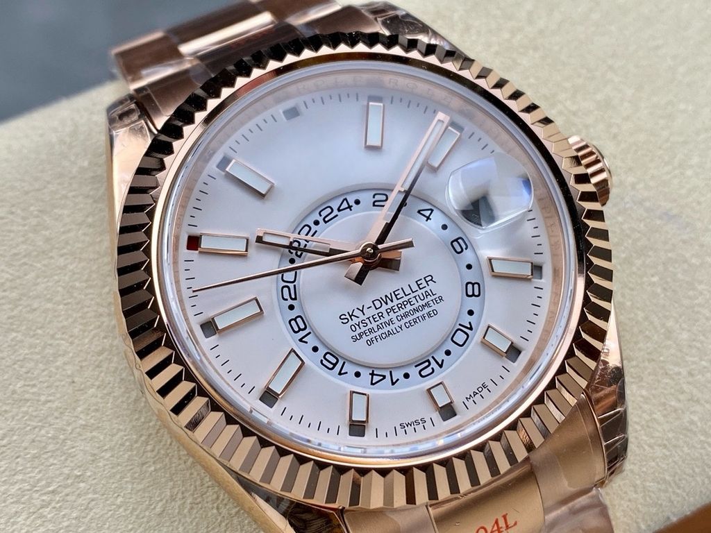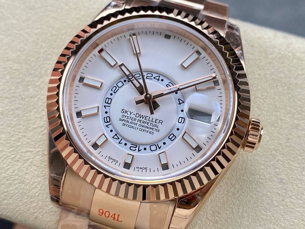 Replica Rolex M336935-0003 Sky-Dweller NOOB factory 9002 movement white dial 18K rose gold stainless steel strap sapphire glassBrand Rolex