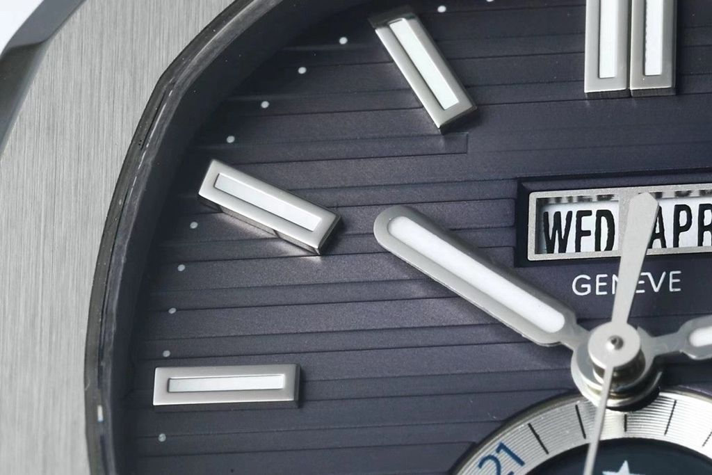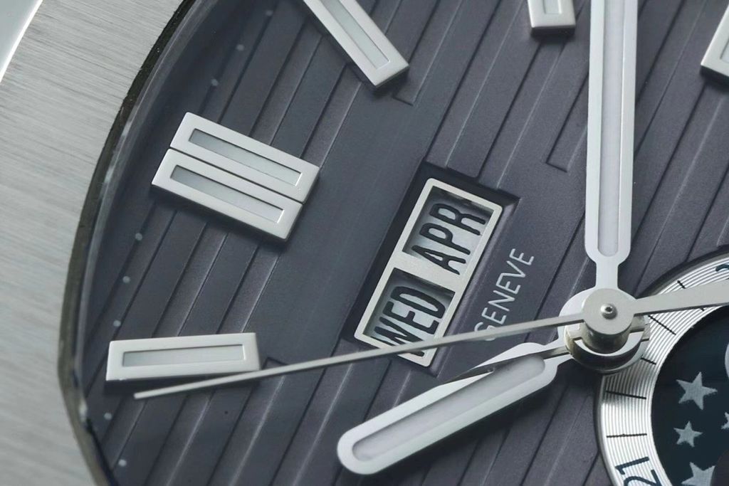 PPF Factory Luxury Replica Patek Philippe Sport Elegance Series Nautilus Annual Calendar Watch 5726 Business Formal Dark Gray Embossed Dial Stainless Steel Strap