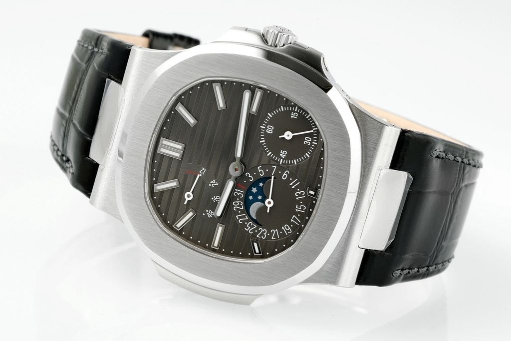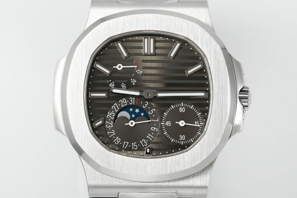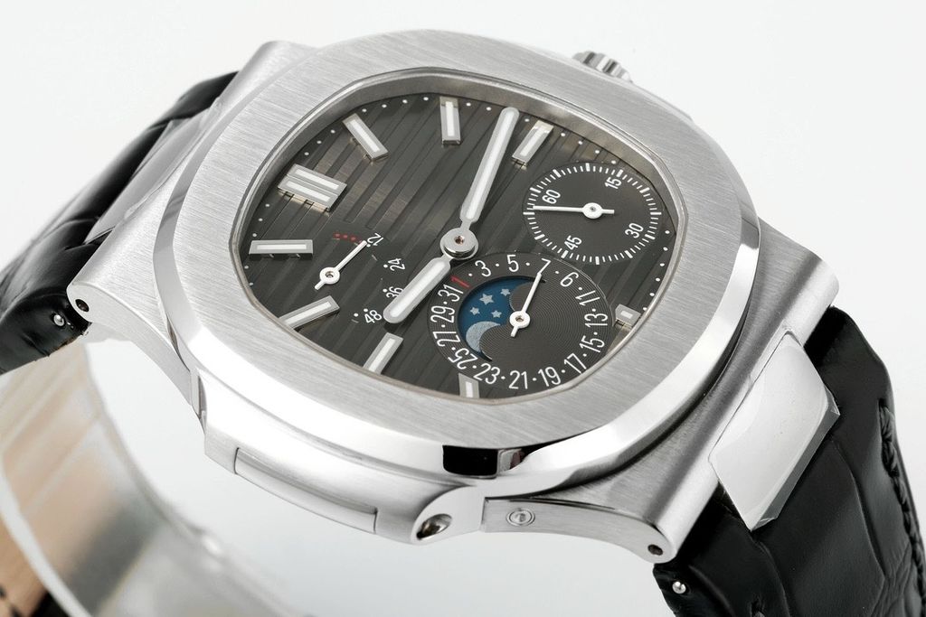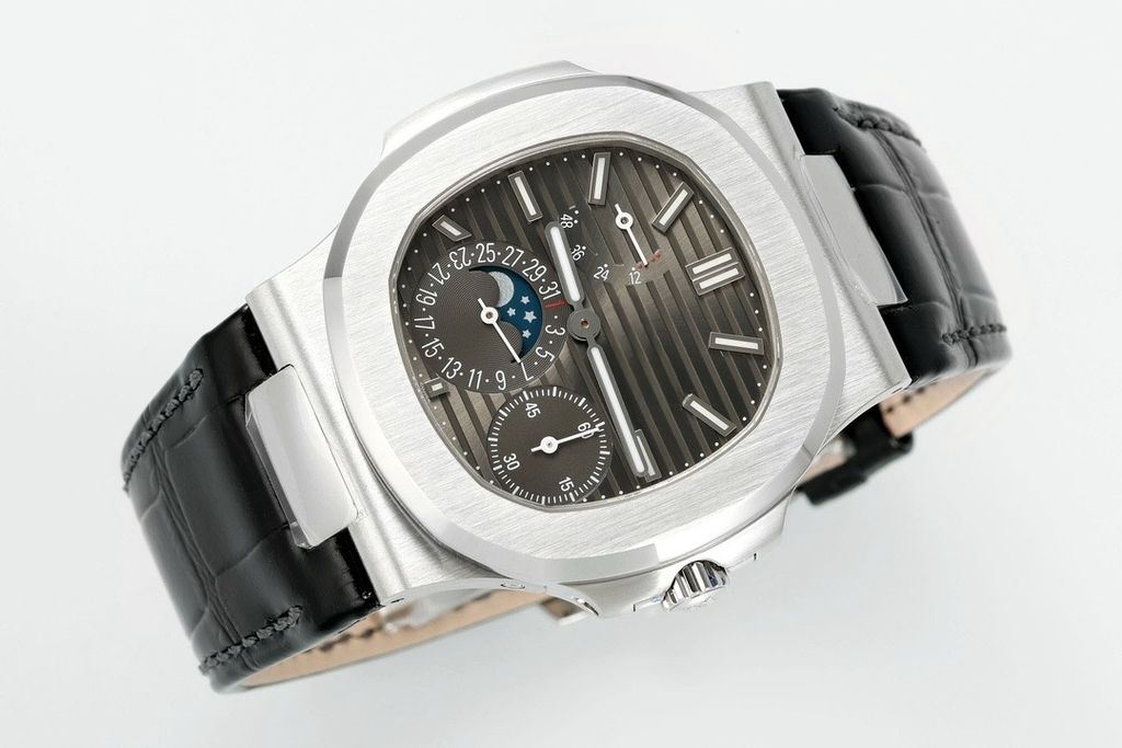 PPF 40mm Luxury Replica Patek Philippe Sport Elegance 5712 Moon Phase True Kinetic Display Dark Grey Dial Genuine Leather Strap
