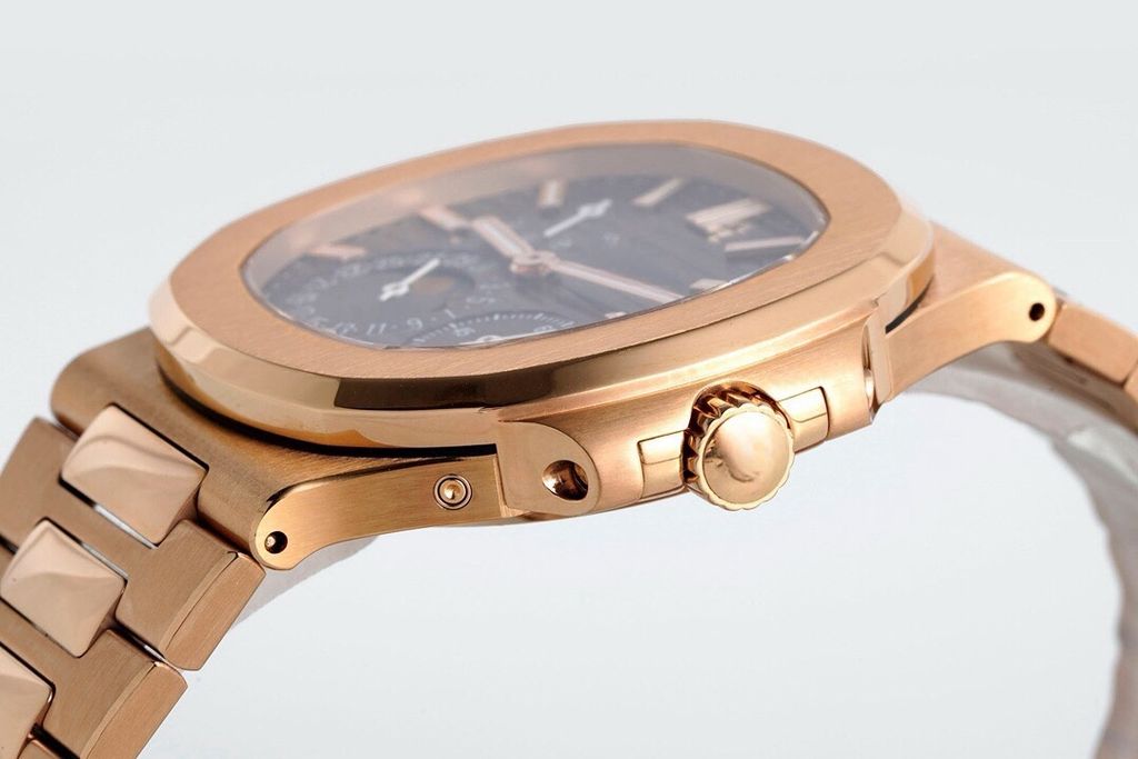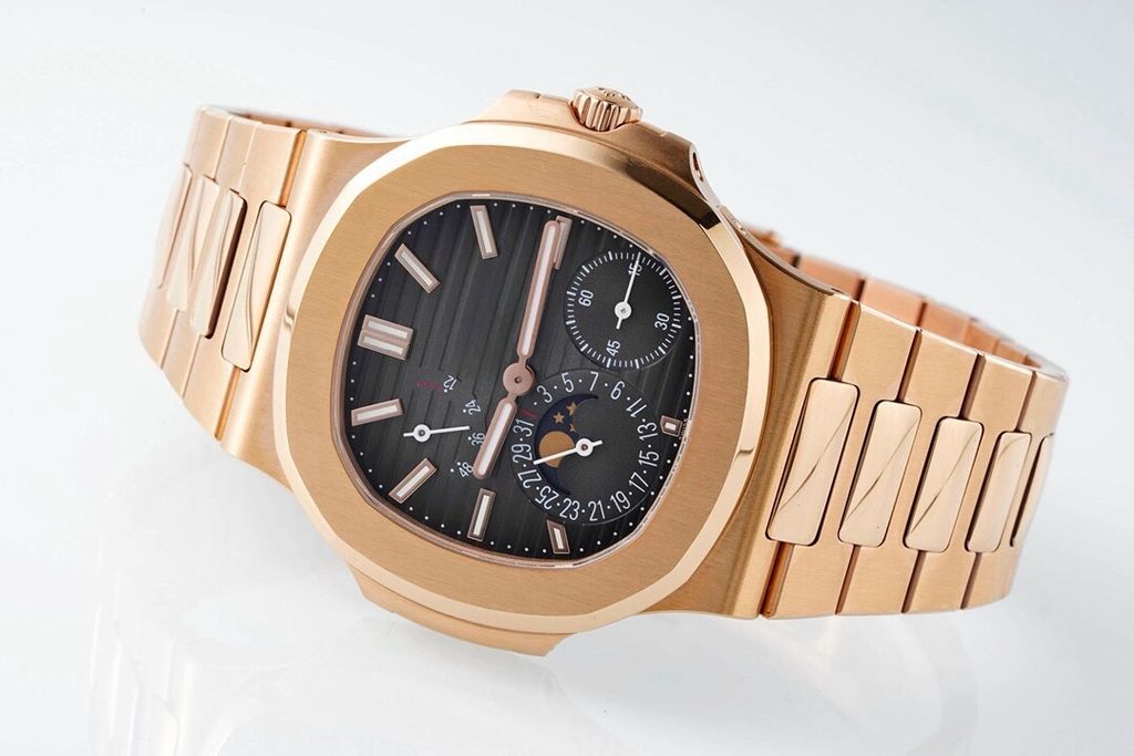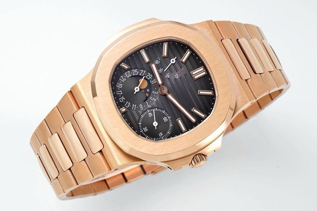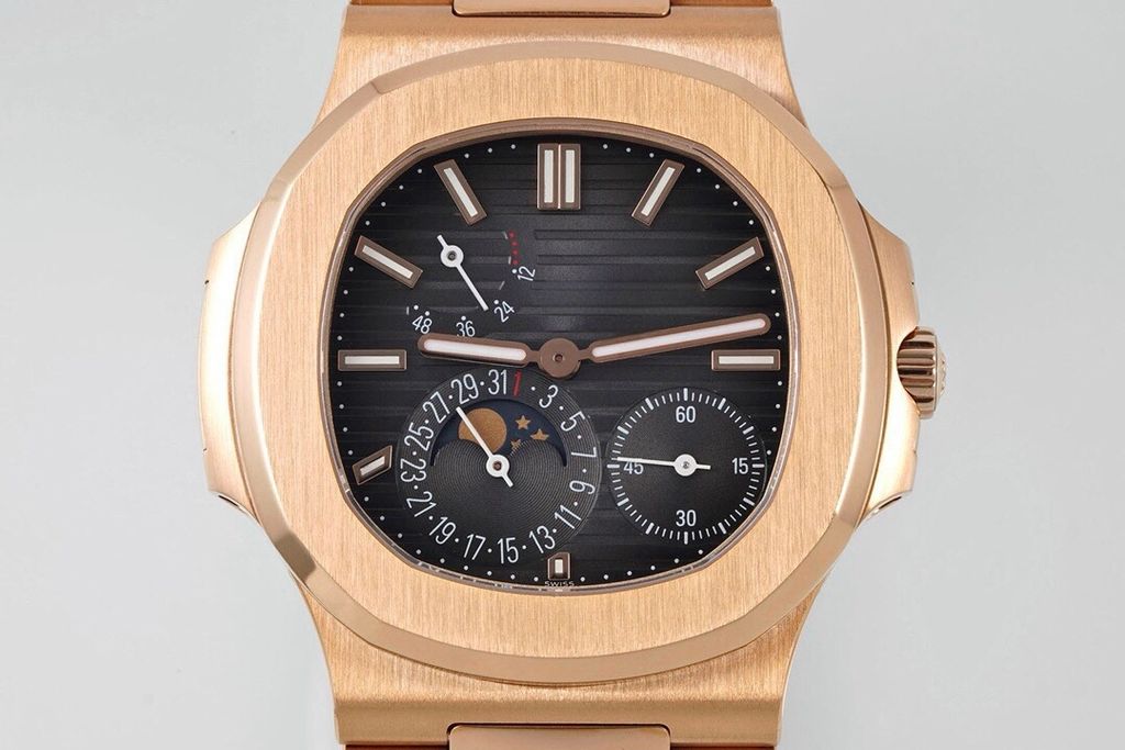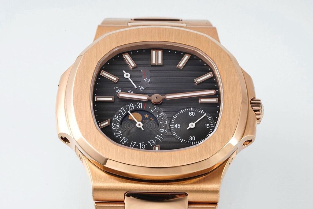 40mm PPF Luxury Replica Patek Philippe Sport Elegant 5712 Moon Phase True Kinetic Display Dark Gray Dial 18K Rose Gold Stainless Steel StrapBrand:Patek Philippe