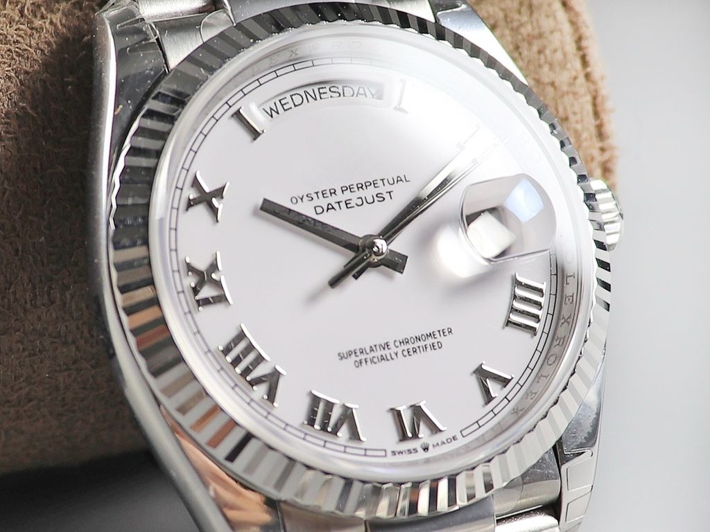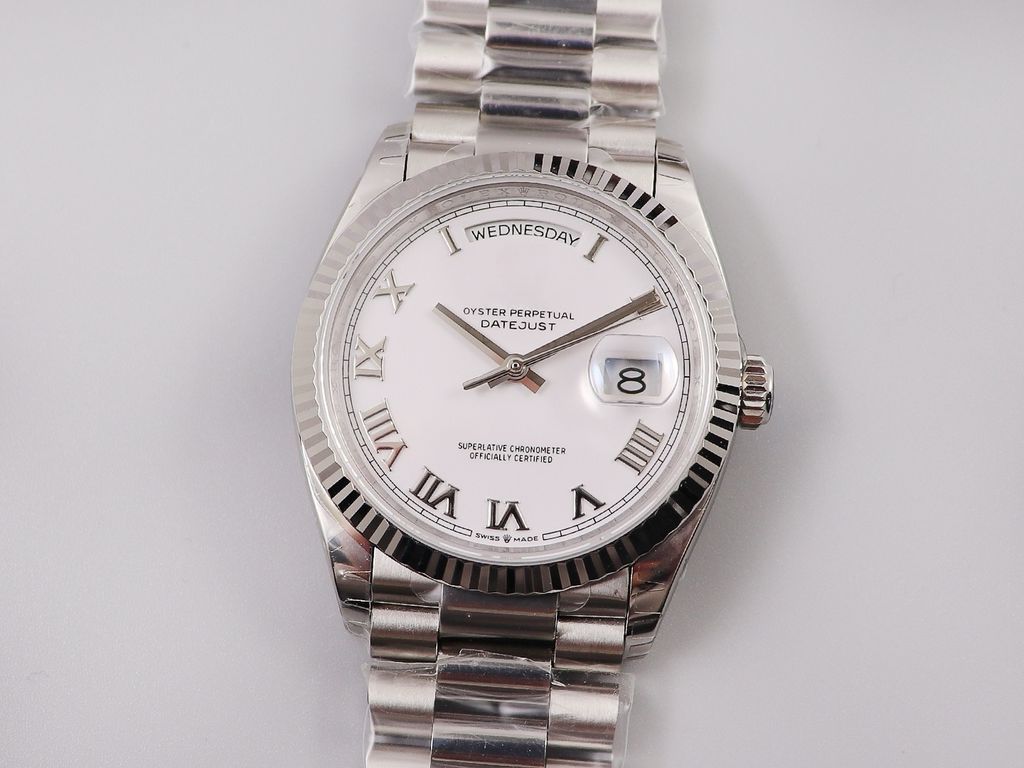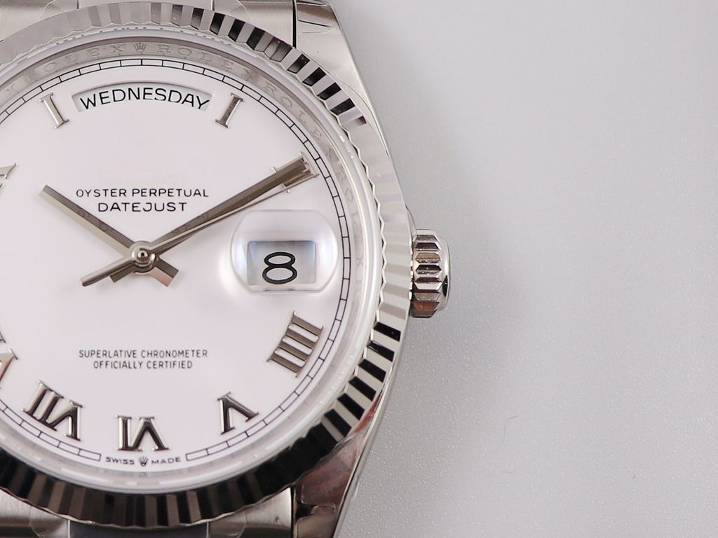 Rolex DayDate 36mm 128239 Series 18K White Gold Sapphire Glass Stainless Steel