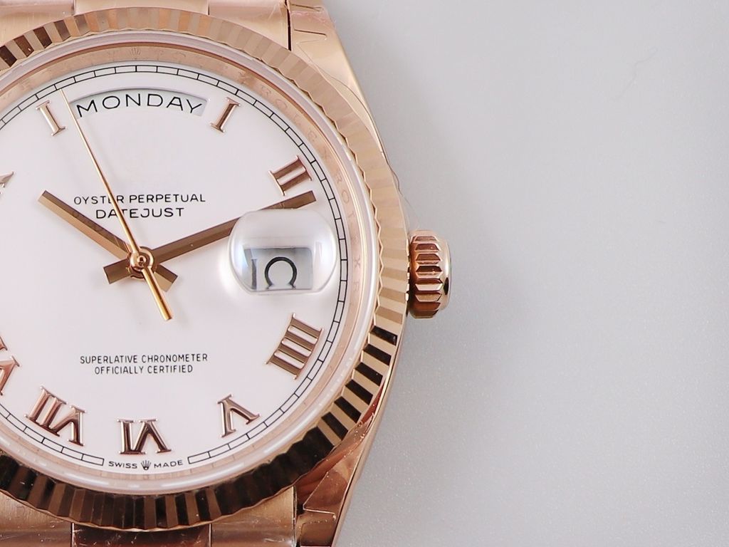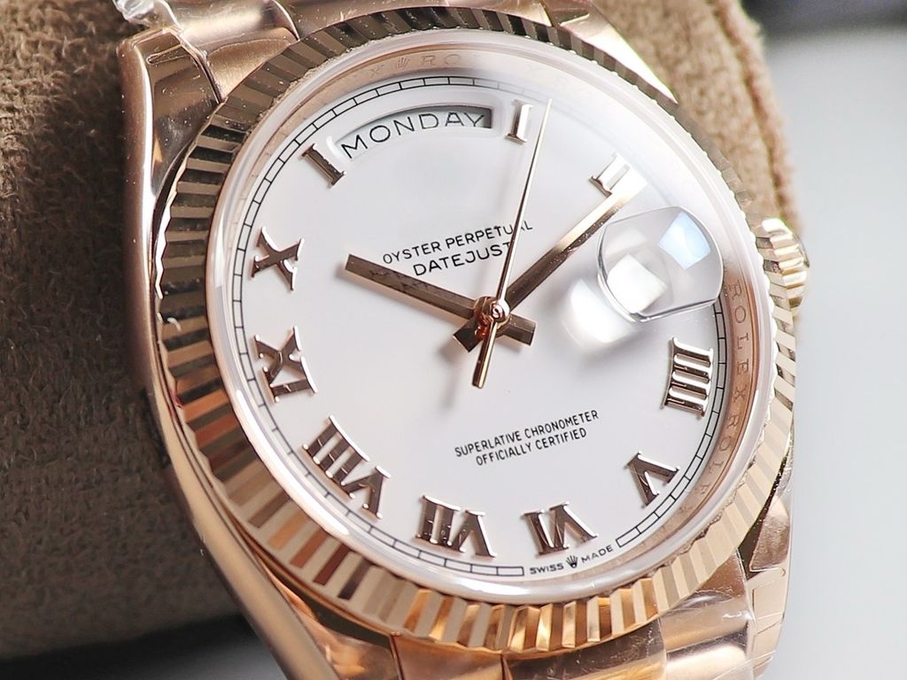 Rolex DayDate 36mm Series 128238 18k Rose Gold Sapphire Glass Stainless Steel