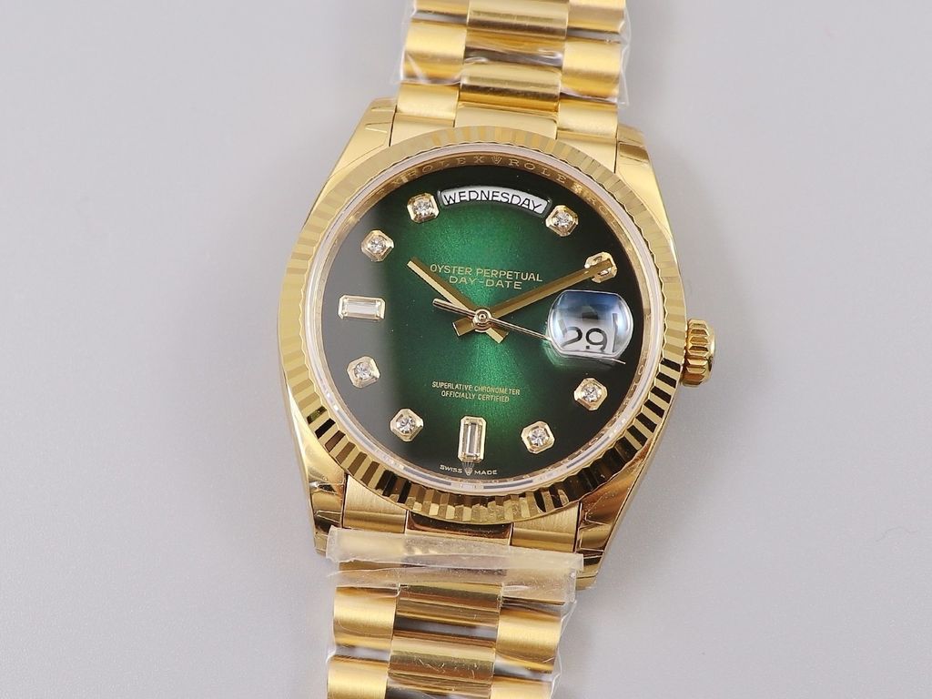 Rolex DayDate series 36mm 128238 18K gold sapphire glass stainless steel