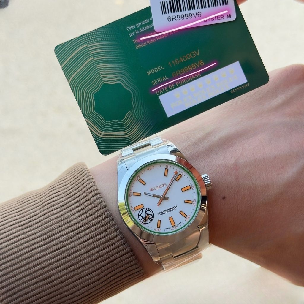 Rolex MILGAUSS Model 116400 3131 Movement 40mm Green Sapphire Glass Orange Lightning Pointer Stainless Steel