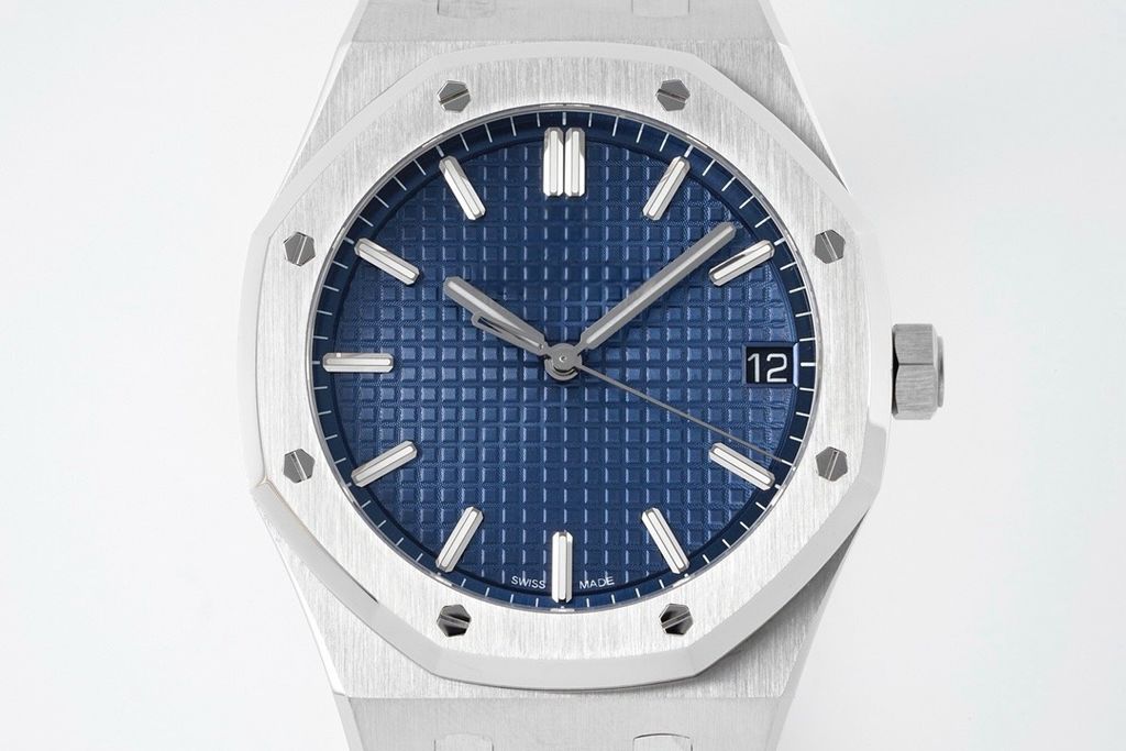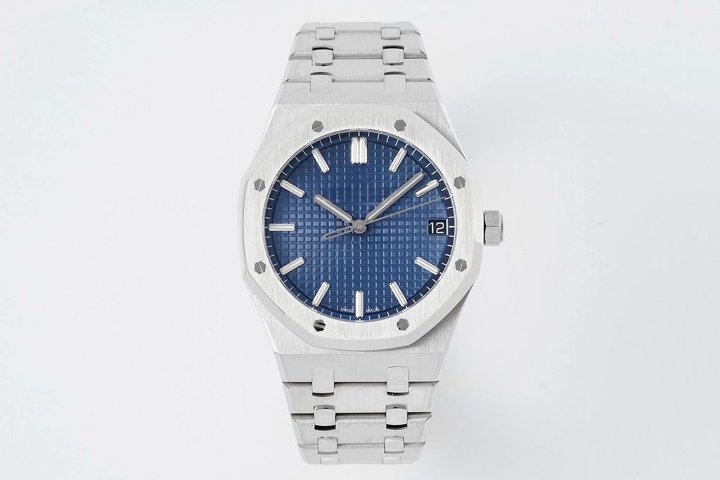 Luxury replica of Audemars Piguet Royal Oak ZF factory 15500ST 4302 movement blue Tapisserie checkered dial 41mm 316 stainless steel sapphire mirror