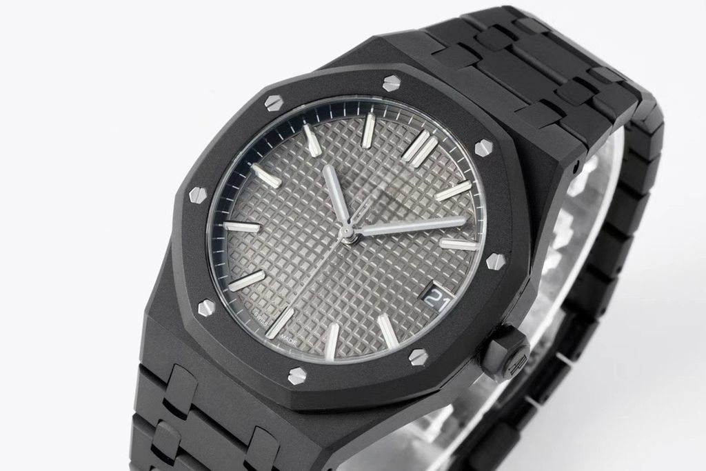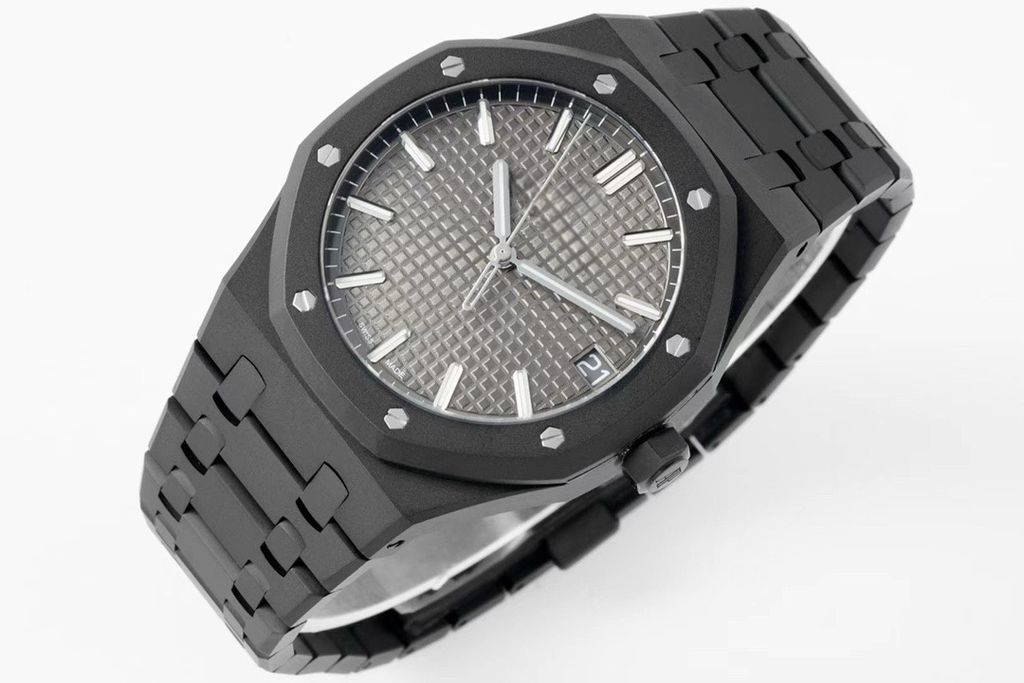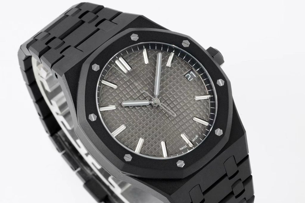 Collectible replica watch AP Royal Oak 15500ST ZF factory DLC version Grey Tapisserie checkered dial 41mm diamond carbon black steel case