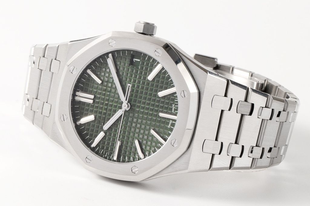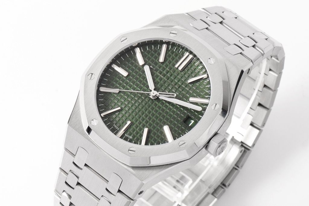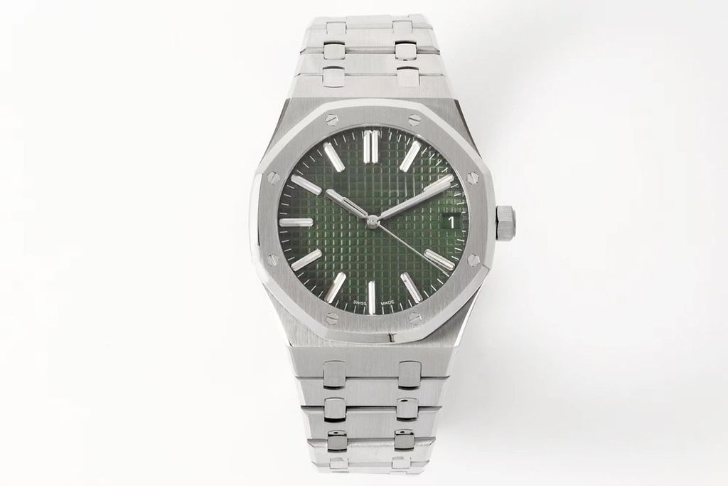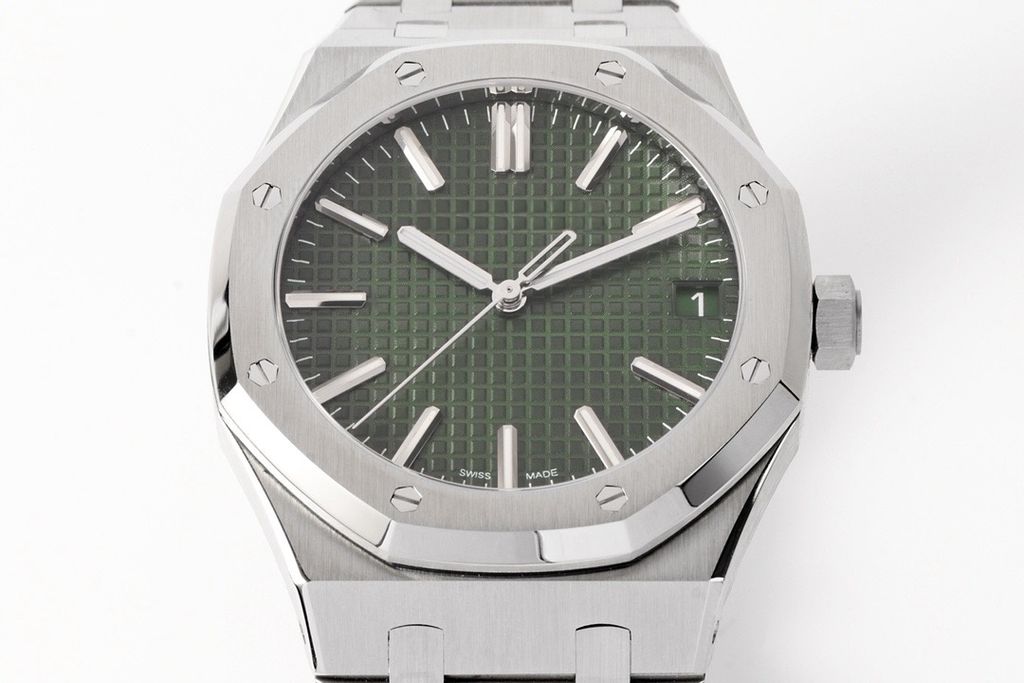 Top replica watch AP Royal Oak 50th Anniversary 15510ST ZF factory 41mm Tapisserie checkered green dial 316 stainless steel sapphire mirror